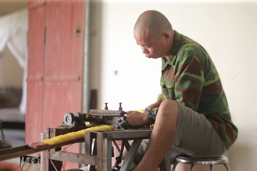 | Việc cuộn và bó phải đảm bảo mỳ sóng đều, mượt và có hoa văn. Ảnh: VOV |