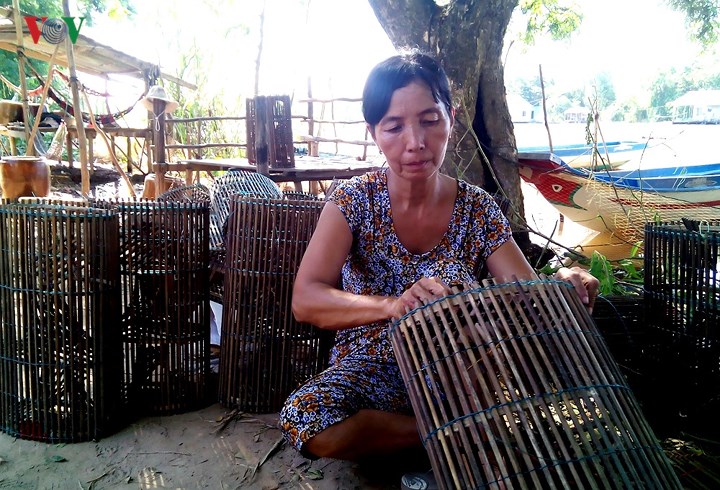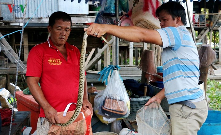 | Không chỉ có các loại cá đặc sản mùa nước nổi ở ĐBSCL còn nhiều loại thủy sản nước ngọt ngon khác như: cua, ếch, lươn, chuột... Một người dân đang chuẩn bị "lợp" ngư cụ để bắt cua đồng. |
