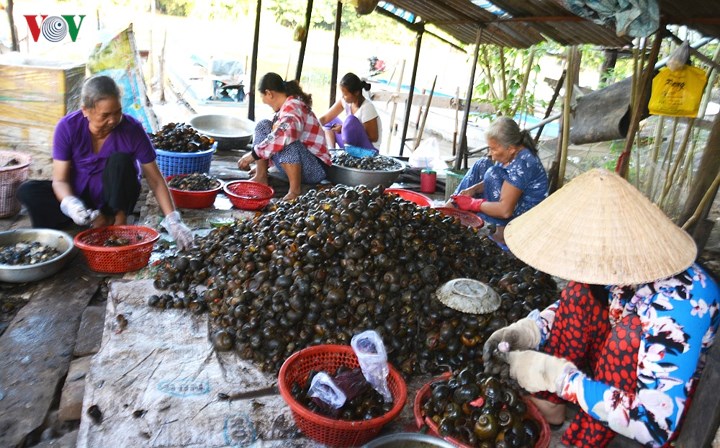 | Ốc bươu làm thức ăn cho cá. |