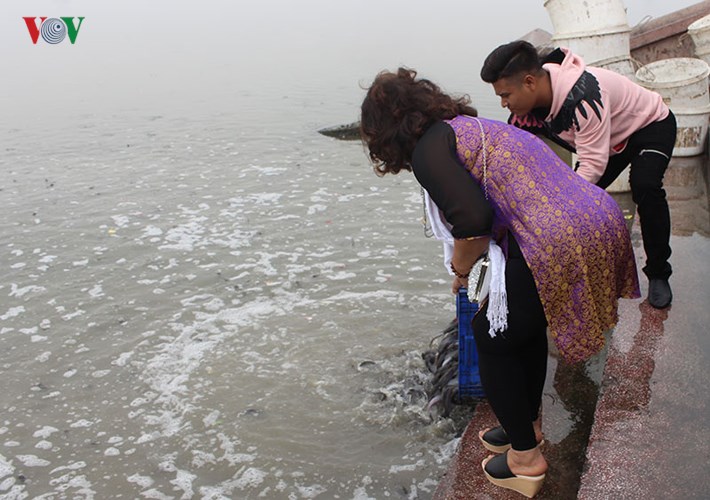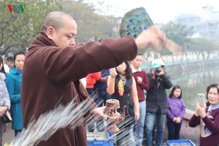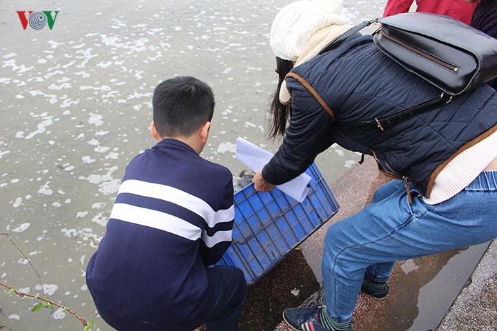 Ngay từ sáng sớm mùng 1 Tết (16/2), nhiều Phật tử và người dân Thủ đô đã tới hồ Tây để thả phóng sinh mong bình an, may mắn. |