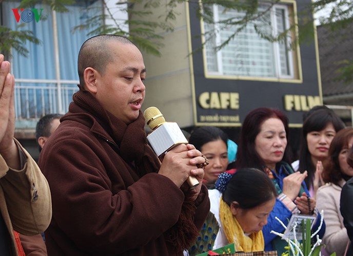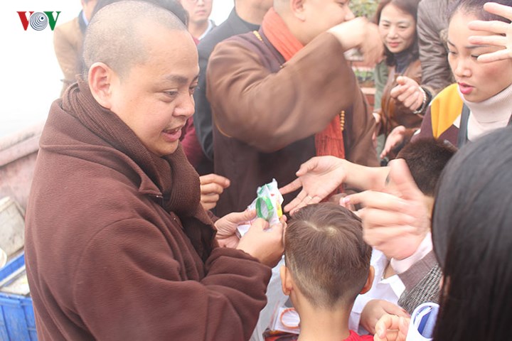 Sư thầy tặng các Phật tử món quà may mắn đầu năm mới. |