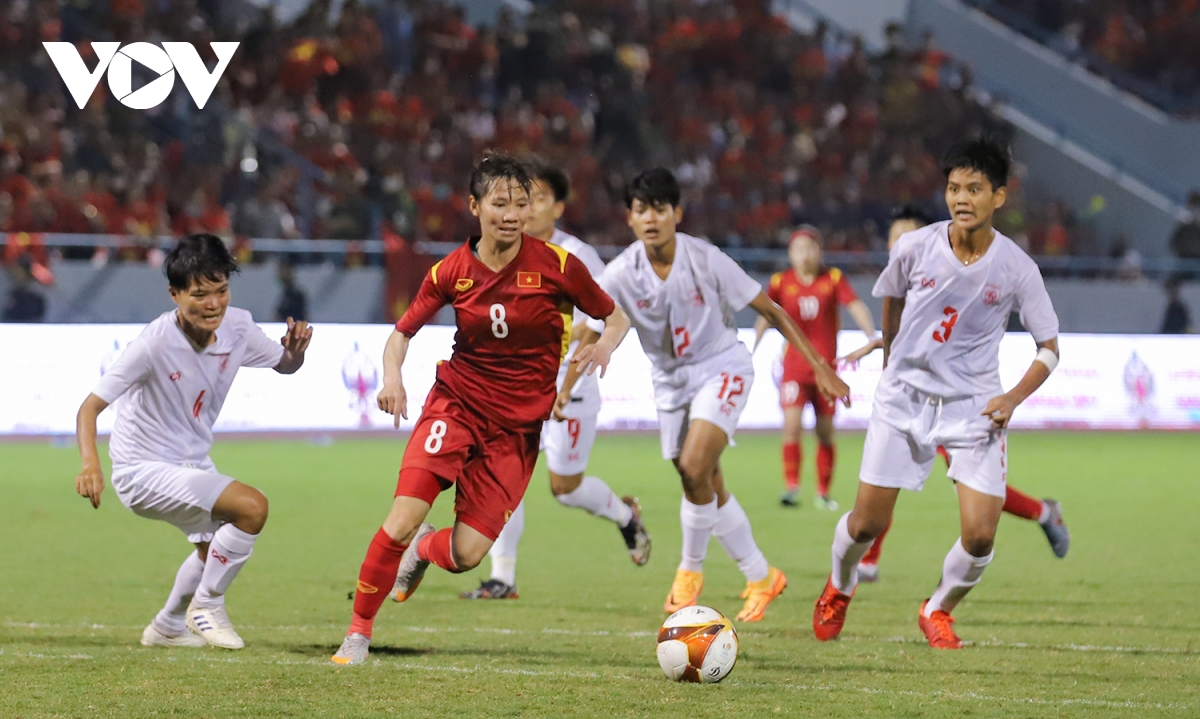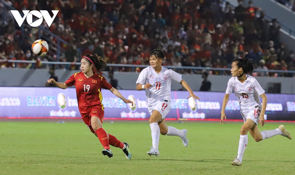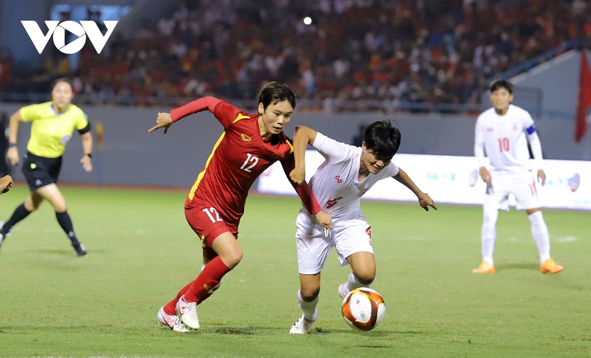 Hết giờ, tuyển nữ Việt Nam giành chiến thắng 1-0 trước Myanmar, đoạt vé vào chung kết bóng đá nữ SEA Games 31. |