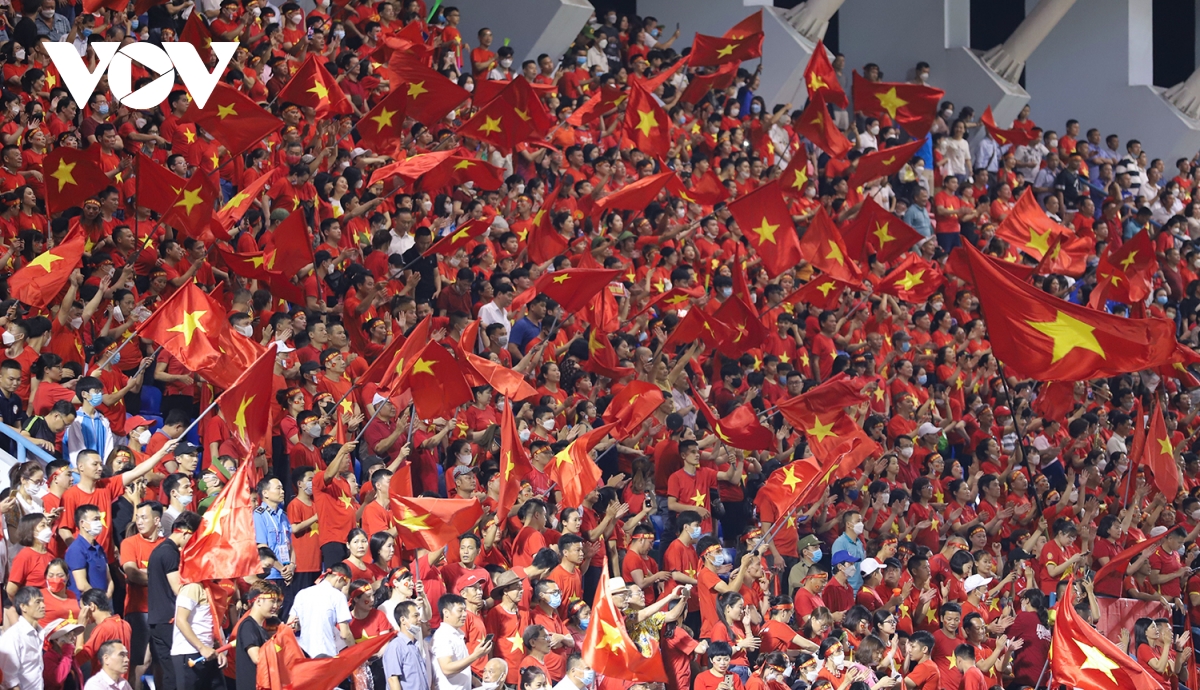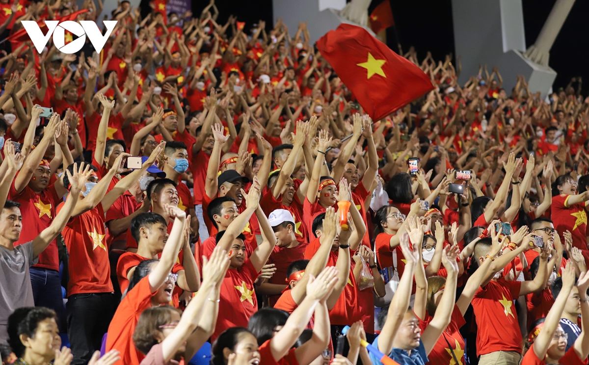 Những làn sóng người và tiếng hô vang dội truyền từ khán đài này sang khán đài kia khiến cả sân vận động như bùng nổ. |