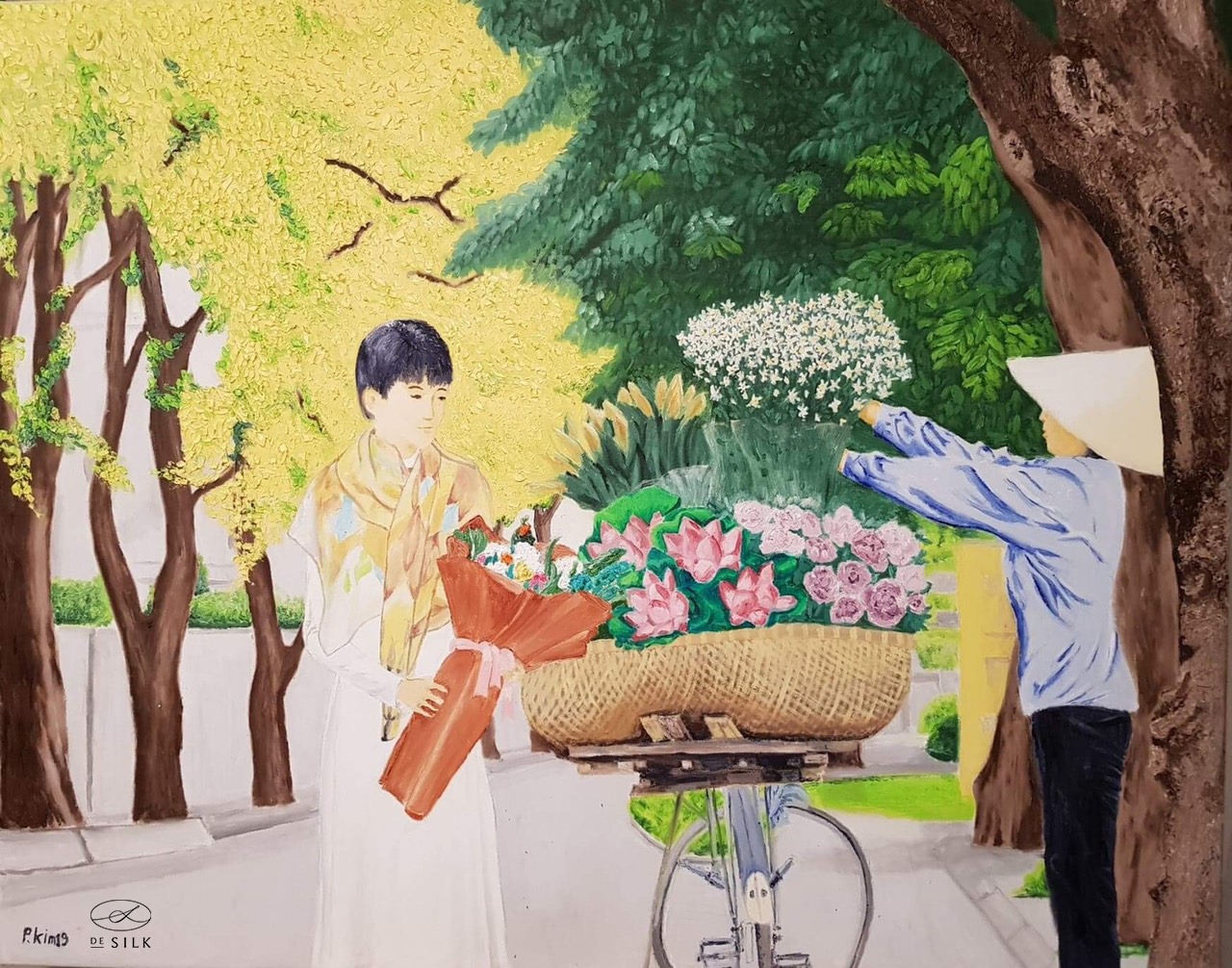 Hà Nội xuân phảng phất giọt mưa lộc cho chồi non bật nhú mầm lá tơ, những tia nắng mỏng óng ánh xiên chéo khoảng không chiếu qua kẽ lá tạo thành nhiều mảnh vàng lấp lánh lả lơi rơi xuống, cơn gió lạnh mơn man ngọt như kem làm bước chân ai phố cổ có chút thong dong nhàn du, thời gian như chậm rãi trôi trong chùng chình níu kéo ngày dài thêm chút nữa.