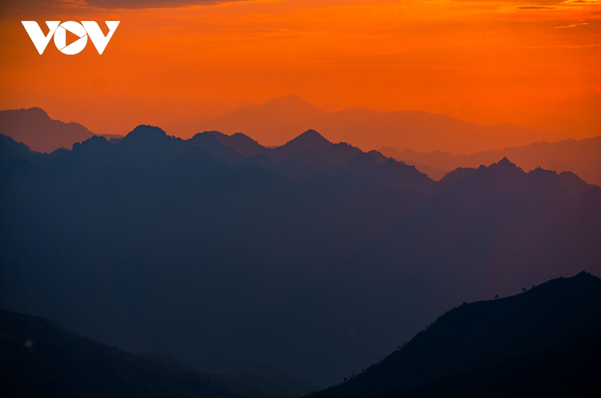 Ngắm hoàng hôn trên những thửa ruộng lênh láng nước đổ, hay đang khuất dần sau những rặng núi xanh điệp trùng, du khách sẽ cảm nhận sâu sắc, thấm thía nét đẹp, điệu hồn riêng của vùng sơn cước hoang vu mà yên ả, thuần khiết. |