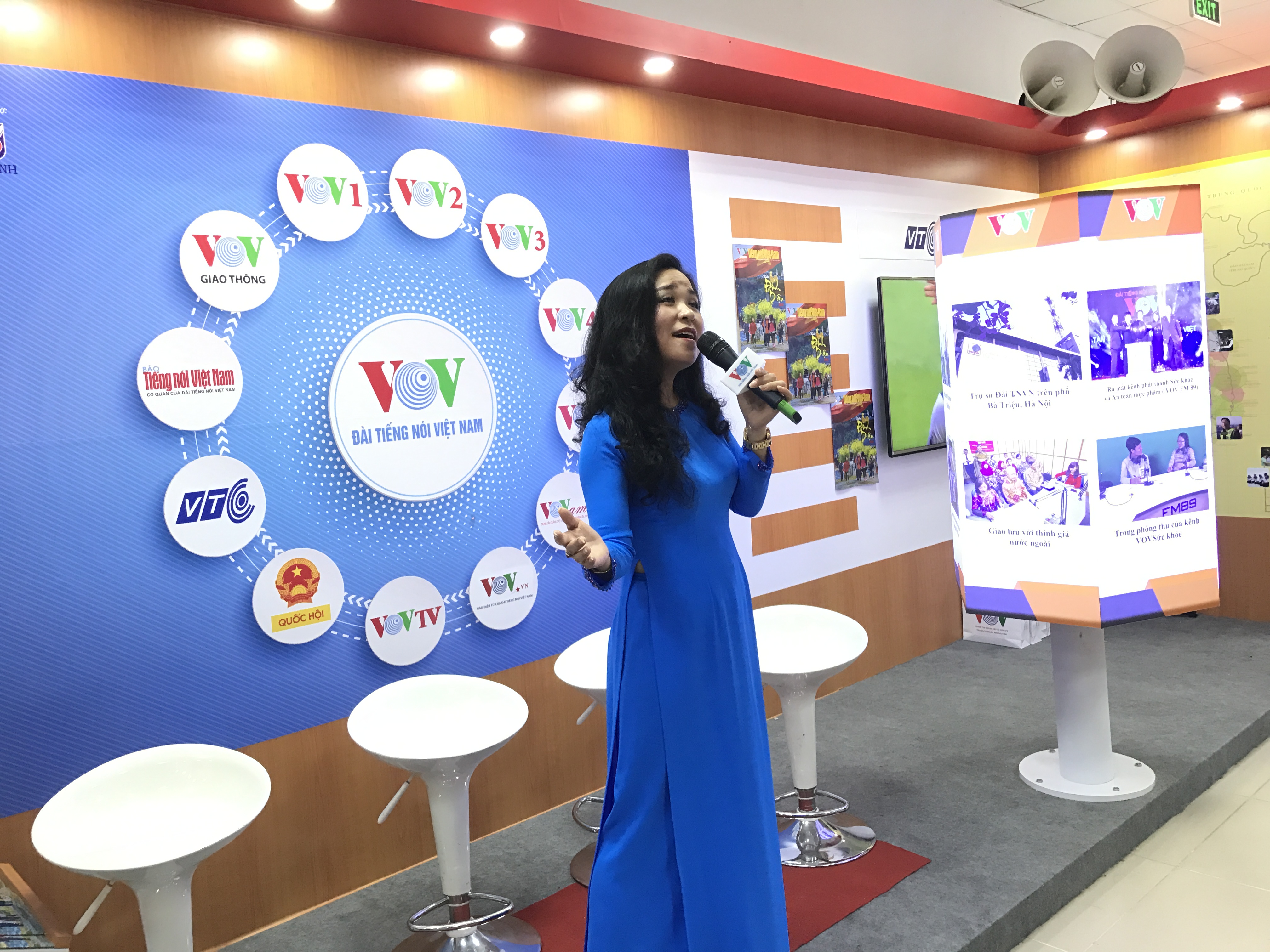 Điều sôi nổi nhất, cuốn hút nhất tại gian trưng bày VOV phải kể đến cuộc thi “Talk trong studio”. Người dự thi sẽ được vào studio giả định được dựng lên ngay tại gian hàng để thể hiện các phần thi dẫn talk, đọc diễn cảm tạp văn và đọc tin... Các buổi thi thu hút hàng chục lượt người tham gia cùng nhiều phần quà của VOV.