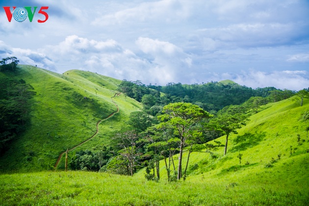 (VOV5) - Hai năm trở lại đây, Tà Năng – Phan Dũng (huyện Tuy Phong, tỉnh Bình Thuận) luôn được những người yêu du lịch khám phá, tìm về với vẻ đẹp nguyên sơ của thiên nhiên, núi rừng. Địa điểm này được dân mê du lịch bình chọn là cung đường trekking đẹp nhất Việt Nam. Hành trình trekking 3 ngày 2 đêm hoặc 2 ngày 1 đêm Tà Năng – Phan Dũng thực sự là hành trình khá thử thách nhưng lại đem đến nhiều cảm xúc trước vẻ đẹp xanh ngời, trong trẻo, bình yên. Đó là vẻ đẹp của những rừng thông vi vu gió lộng, là những đồi cỏ xanh mướt trải ra bất tận, ngút ngàn, là rừng nguyên sinh thâm u với cây cỏ non tơ ở dưới. Trên con đường băng rừng, lội suối, xuyên qua những đồi cỏ ấy, đôi khi bạn sẽ bắt gặp những đóa hoa rừng duyên dáng, xinh tươi khiến những trái tim yêu cái đẹp chết lặng. Và hơn hết, khi trải nghiệm trekking Tà Năng – Phan Dũng, bạn được hòa cùng với thiên nhiên, quên mọi ưu phiền để tâm hồn được thanh lọc giữa không gian trong xanh.