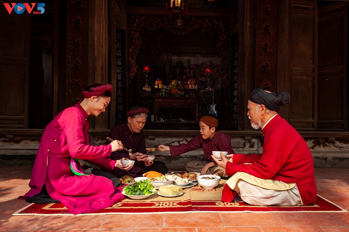 Bữa cơm quây quần bên gia đình ngày Tết là bữa cơm ngon nhất và hạnh phúc nhất. |