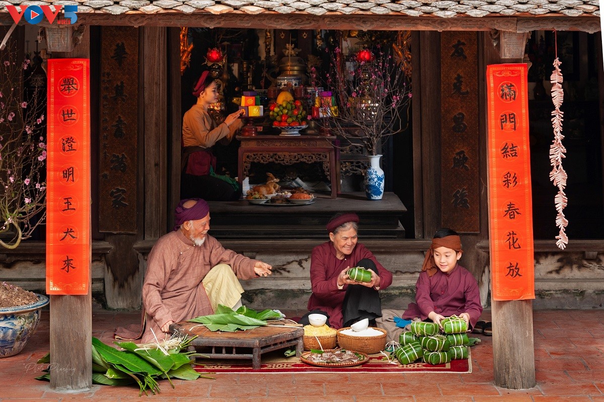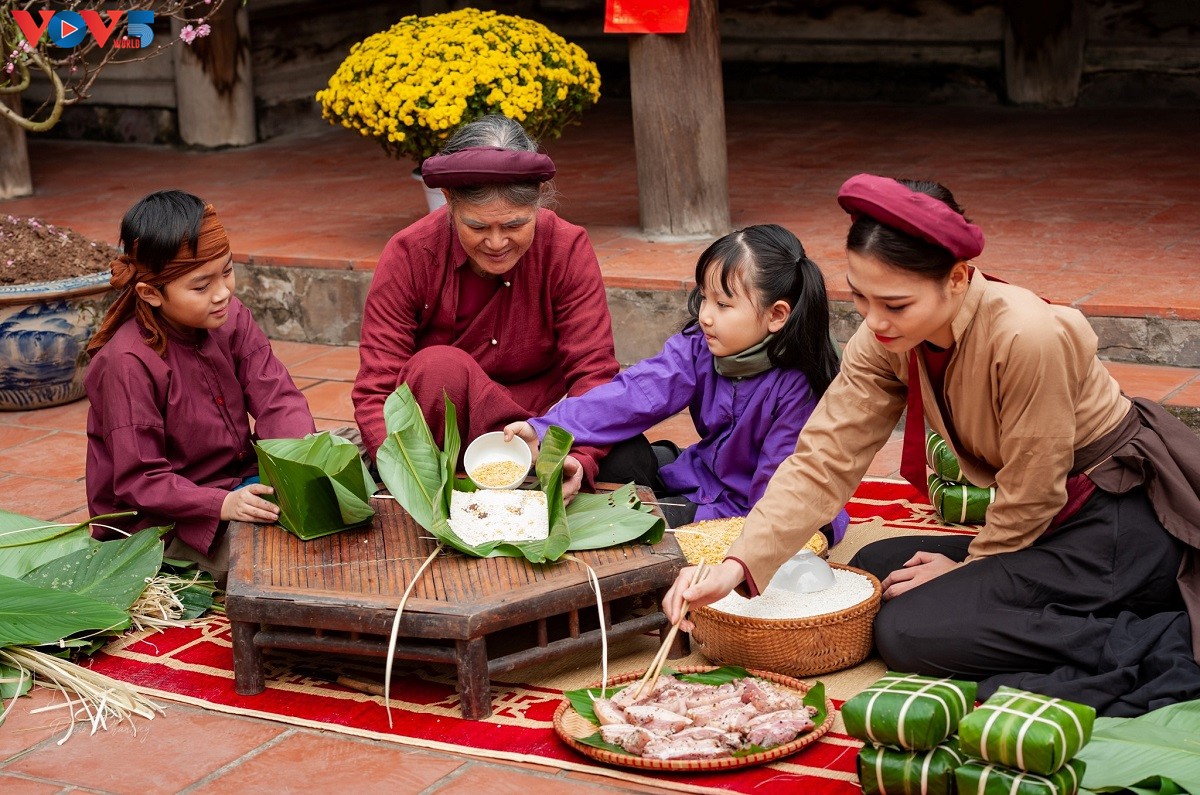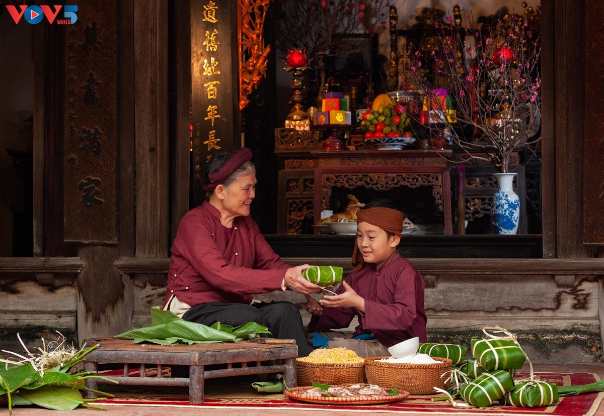 Cứ thế, phong tục gói bánh chưng ngày Tết dần đi vào tiềm thức của con trẻ. |
