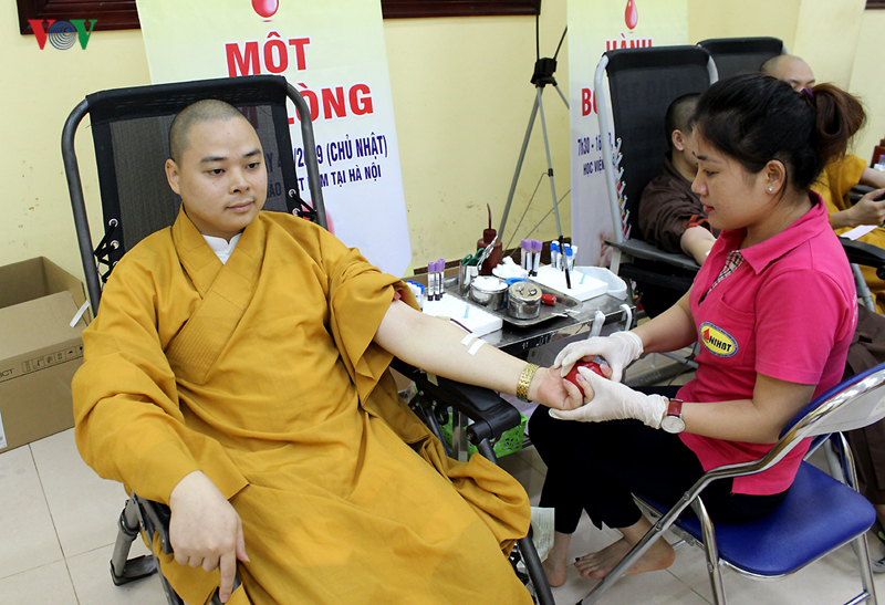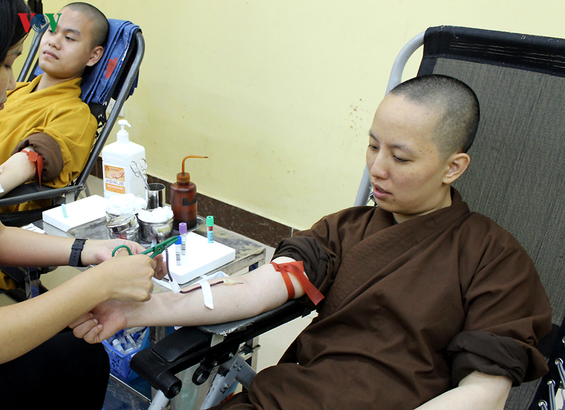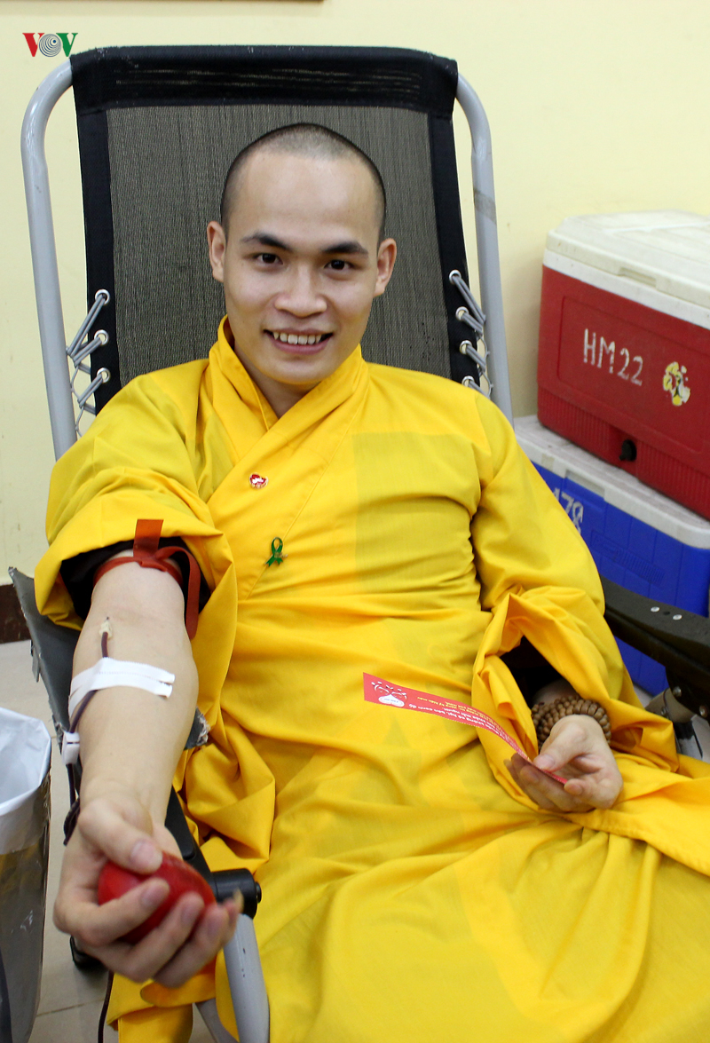 Ni sư Thích Nữ Diệu Giác cho biết, trước đây ni sư cũng vài lần tham gia hiến máu ở chùa Tứ Kỳ (Hà Nội) nhưng vì huyết áp thấp nên không được hiến máu. Hôm nay, ni sư rất vui vì lần đầu tiên đủ tiêu chuẩn sức khỏe để hiến máu.