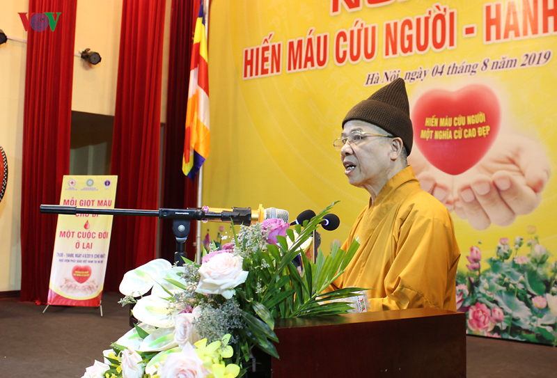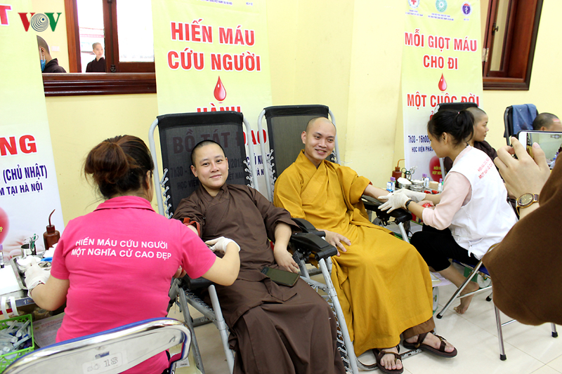 Thượng tọa Thích Thanh Quyết - Viện trưởng Học viện PGVN là người đầu tiên tham gia hiến máu. Thượng tọa cho biết, đây sẽ là một hoạt động thường xuyên, được Học viện PGVN tổ chức hàng năm.