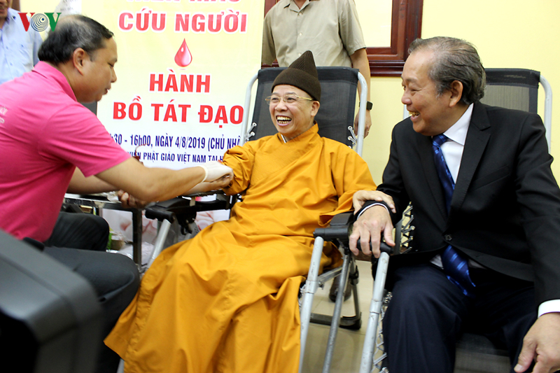 Phó Thủ tướng Trương Hòa Bình cho rằng, ngày hội "Hiến máu cứu người - Hành Bồ Tát đạo" của tăng ni sinh Học viện PGVN thể hiện tình cảm, trách nhiệm và sự sẻ chia đối với cộng đồng, góp phần tích cực vào phong trào vận động hiến máu tình nguyện, hiến mô tạng cứu người trên cả nước.
