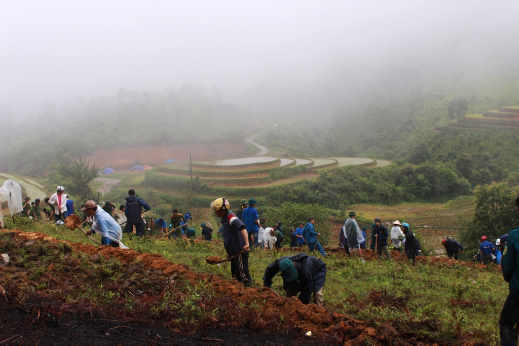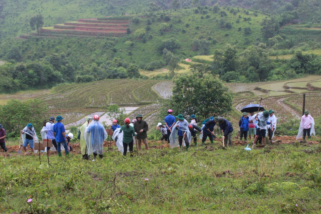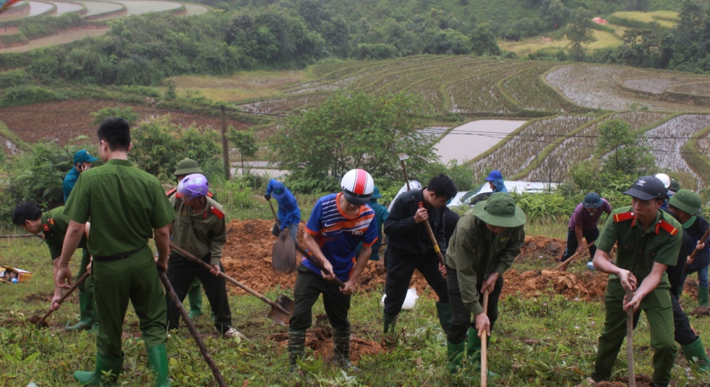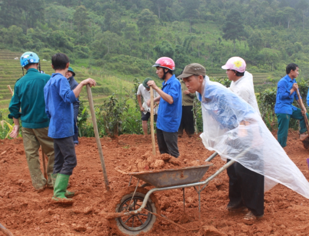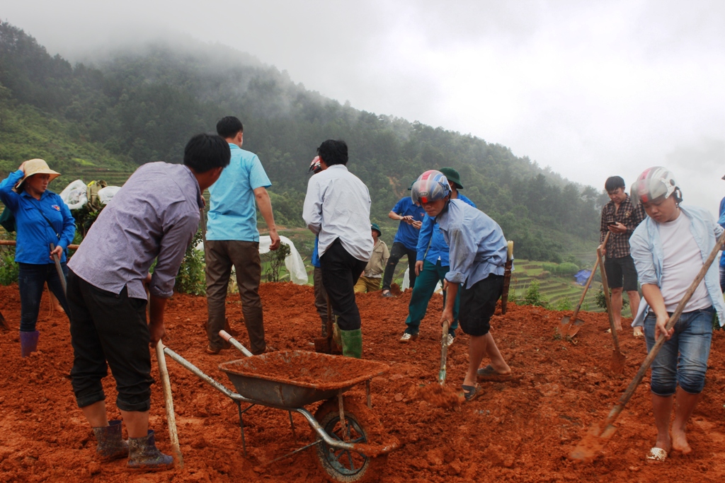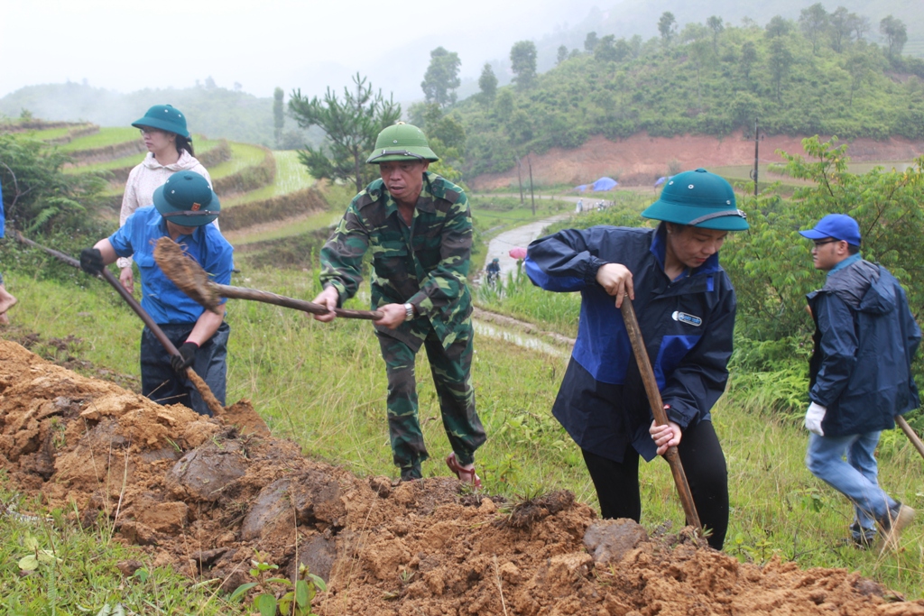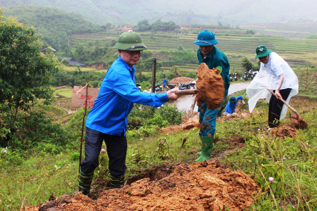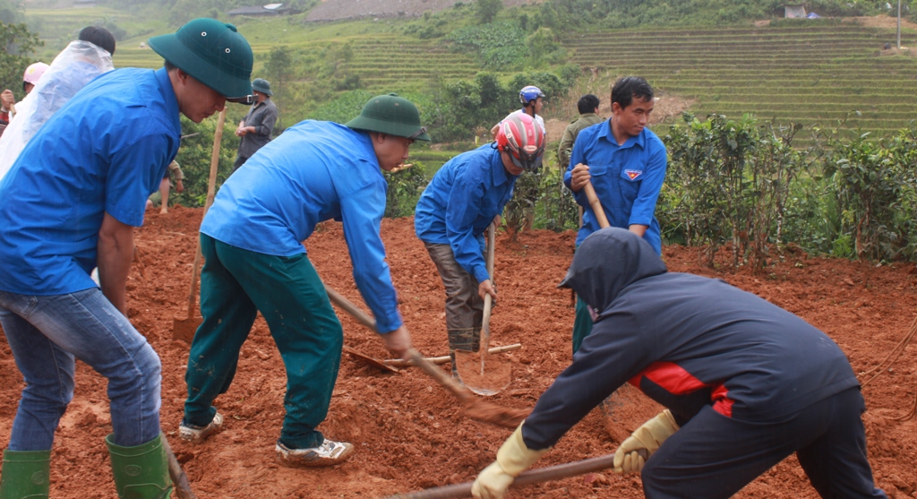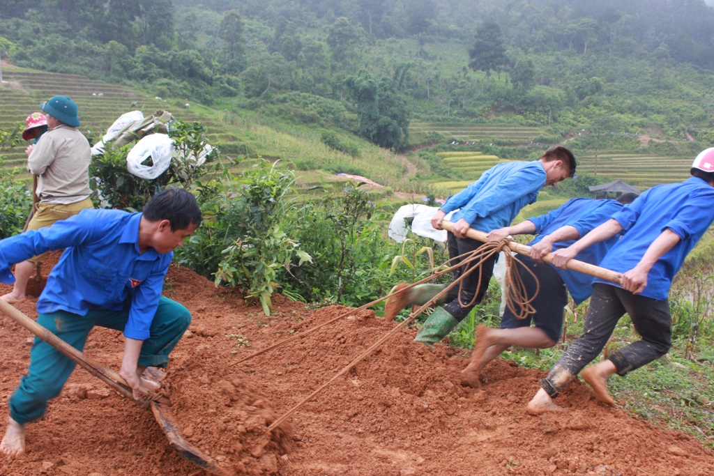 Lãnh đạo huyện Trạm Tấu tham gia khai hoang ruộng cùng đoàn viên thanh niên