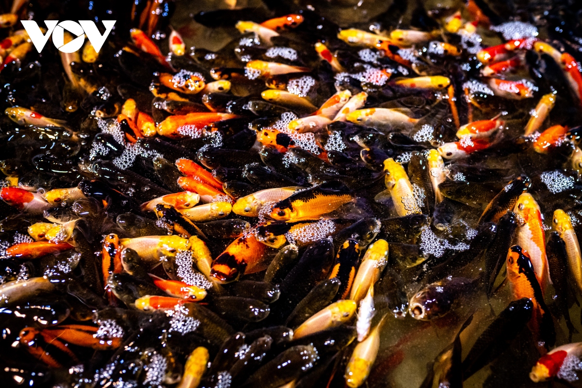 Ngoài cá chép đỏ và cá chép vàng, năm nay các tiểu thương ở chợ Yên Sở còn cung cấp ra thị trường một số loại cá có màu sắc rất bắt mắt (cá Tam Dương). |