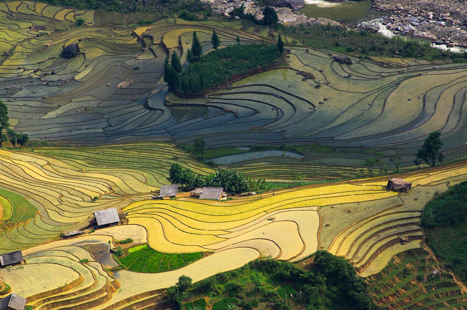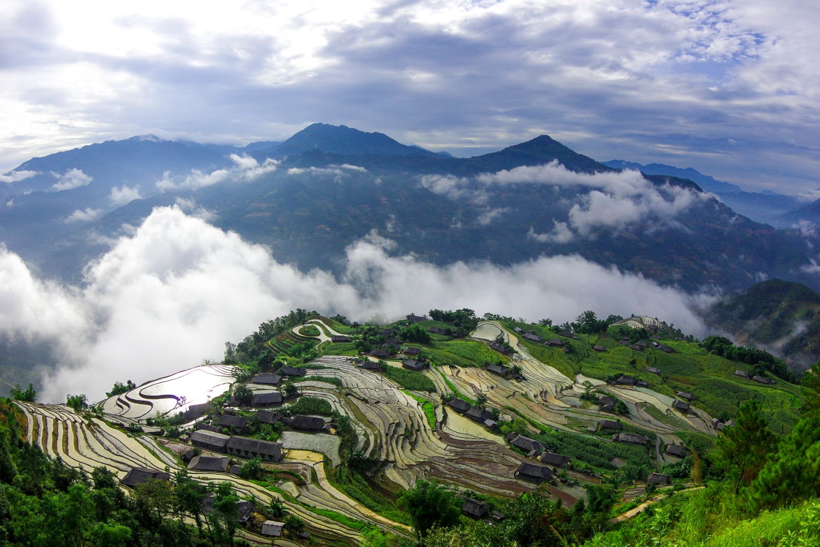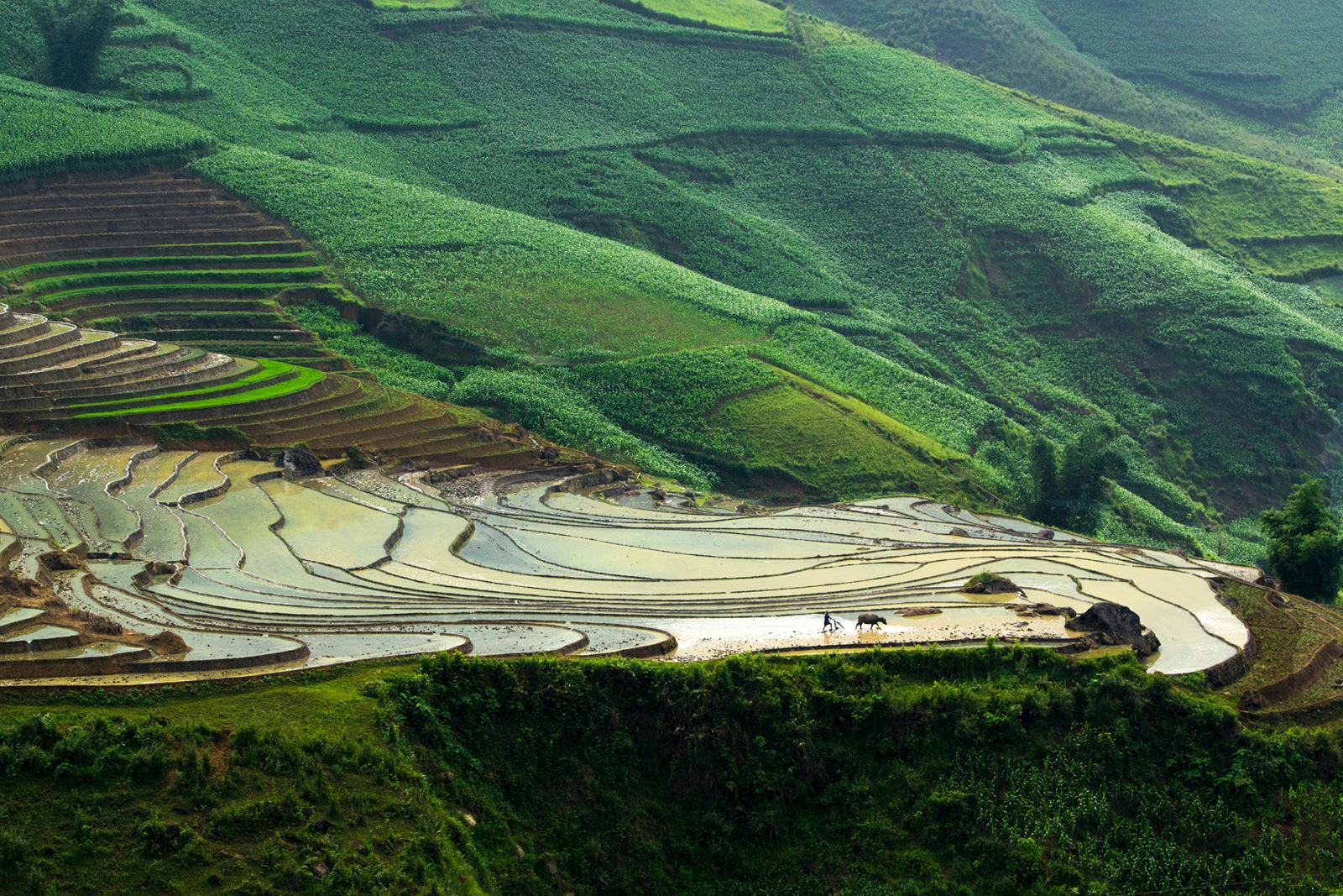 Xuân đi, hạ về. Những đám mây mang những cơn mưa nặng hạt đến. Và thành nước ruộng xám trắng, rồi vàng đất sét, đổ từ bậc thang ruộng này sang bậc thang ruộng khác, mênh mang pha màu trong đất ải trộn với màu của trời xanh trên cao, phản chiếu để tạo nên một bức họa thiên nhiên có sắc màu kỳ vĩ. Đẹp đến kỳ lạ.
