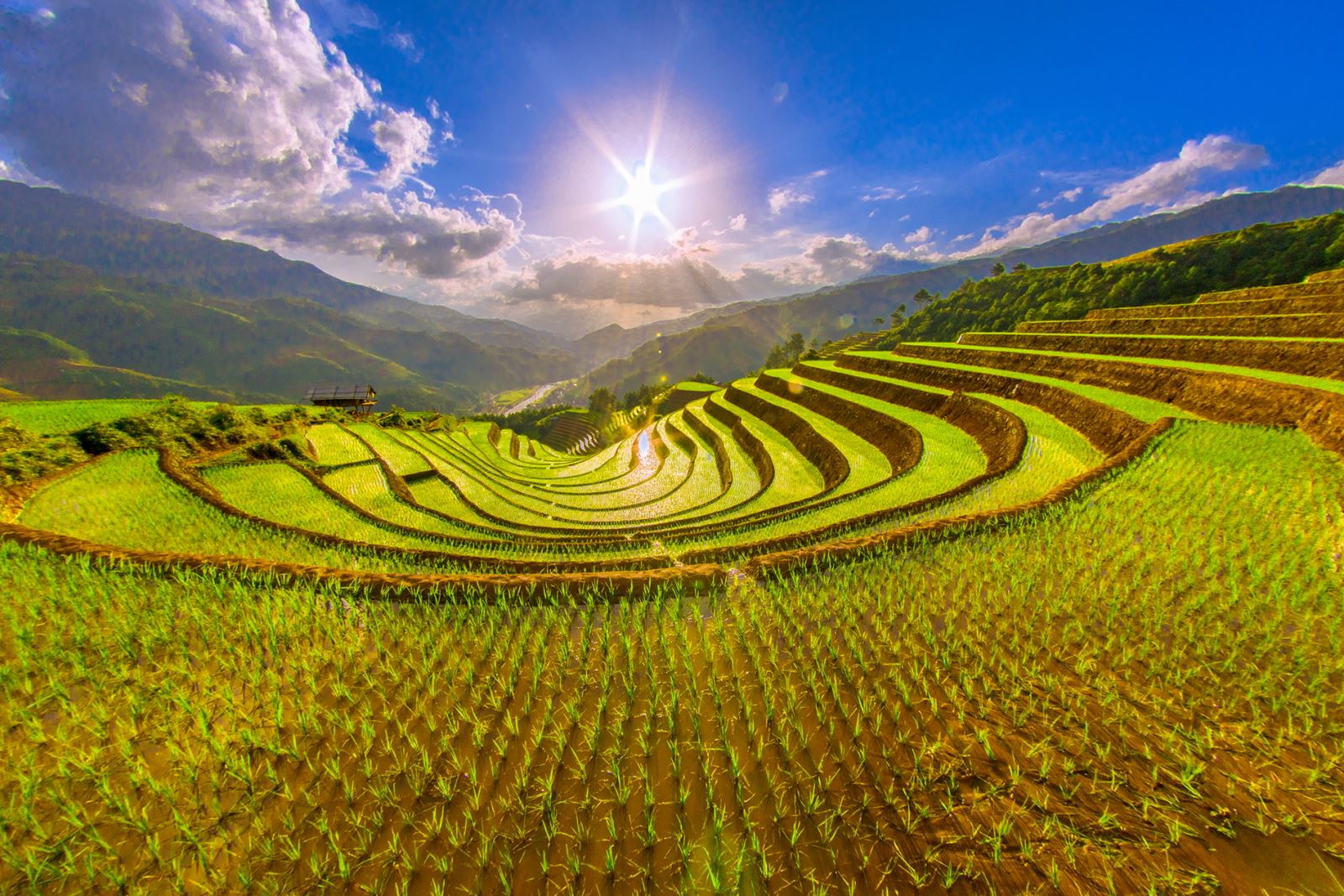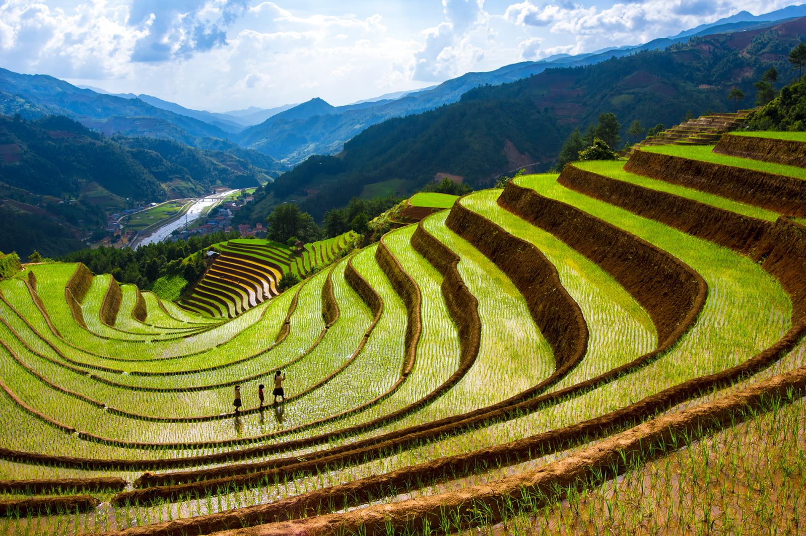 Màu xanh đã phủ khắp các mặt ruộng bậc thang ở Sáng Nhù (Mù Cang Chải, Yên Bái)