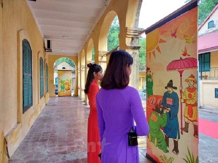 Các pano giới thiệu nghi lễ, phong tục Tết Đoan Ngọ xưa. Ảnh: Minh Thu/Vietnam+ |