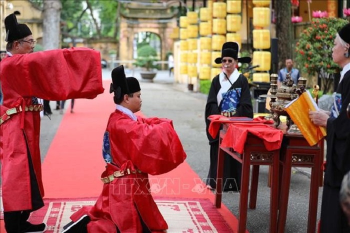 Các nghi thức trong lễ ban quạt. Ảnh: Thanh Tùng/TTXVN |