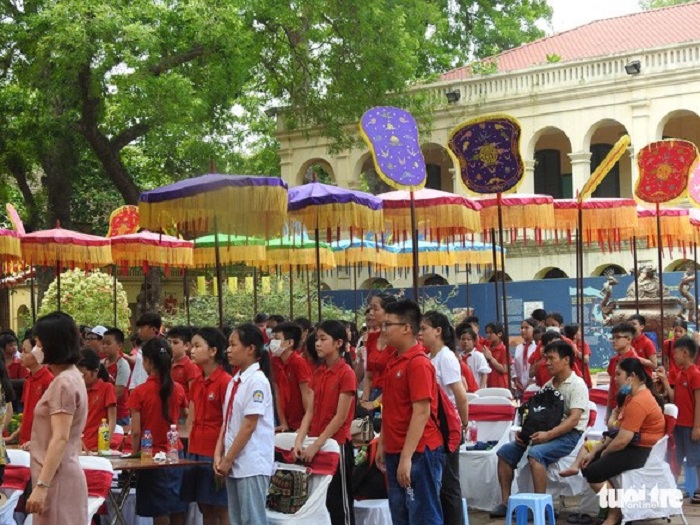 Đông đảo các em học sinh được tìm hiểu về lịch sử, văn hóa truyền thống một cách hấp dẫn tại Hoàng thành Thăng Long. Ảnh: Thiên Điểu/ tuoitre.vn |