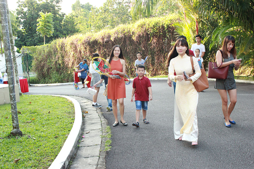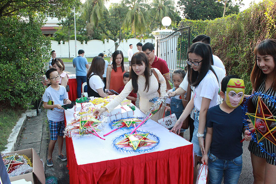 Theo bà Nguyễn Thúy Hà, Trưởng Ban Liên lạc cộng đồng người Việt Nam tại Singapore, có hàng trăm gia đình đăng ký đưa các cháu nhỏ đến dự Tết Trung thu trong khuôn viên sứ quán Việt Nam tại đây.