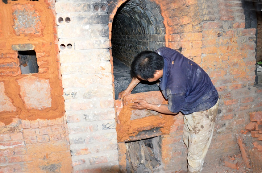 Đặt than, xếp củi, đắp đất, bít lò chuẩn bị nung gốm. Ảnh: baoquangninh.com.vn