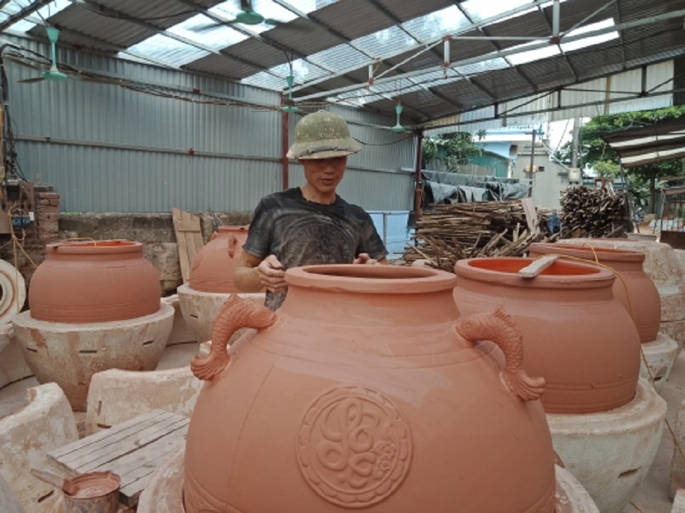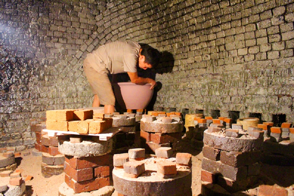 Đặc biệt, làng gốm truyền thống này đến nay vẫn còn giữ được cách nung gốm bằng củi. Theo nghệ nhân Nguyễn Đình Cầu, gốm ở đây đều được nung suốt 24 giờ với nhiệt độ dao động từ 1.200 - 1.300 độ C. Sản phẩm khi ra lò sẽ có độ bền cao, dày, ít bị nứt vỡ và hoa văn không phai màu do được chạm khắc trực tiếp vào sản phẩm chứ không phải vẽ trên men.