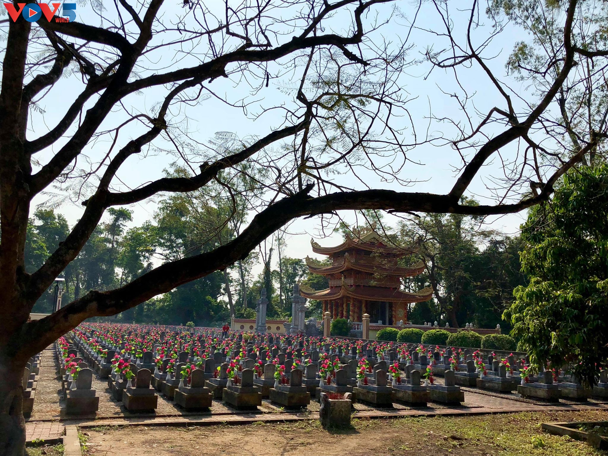 (VOV5) - Nghĩa trang Liệt sĩ Quốc gia Trường Sơn tọa lạc trên những vạt đồi tại Bến Tắt thuộc xã Vĩnh Trường, huyện Gio Linh, tỉnh Quảng Trị. Đây là nơi quy tập hơn 10.000 hài cốt các liệt sĩ đã chiến đấu và hy sinh trên tuyến đường Trường Sơn huyền thoại - còn được gọi là đường mòn Hồ Chí Minh.