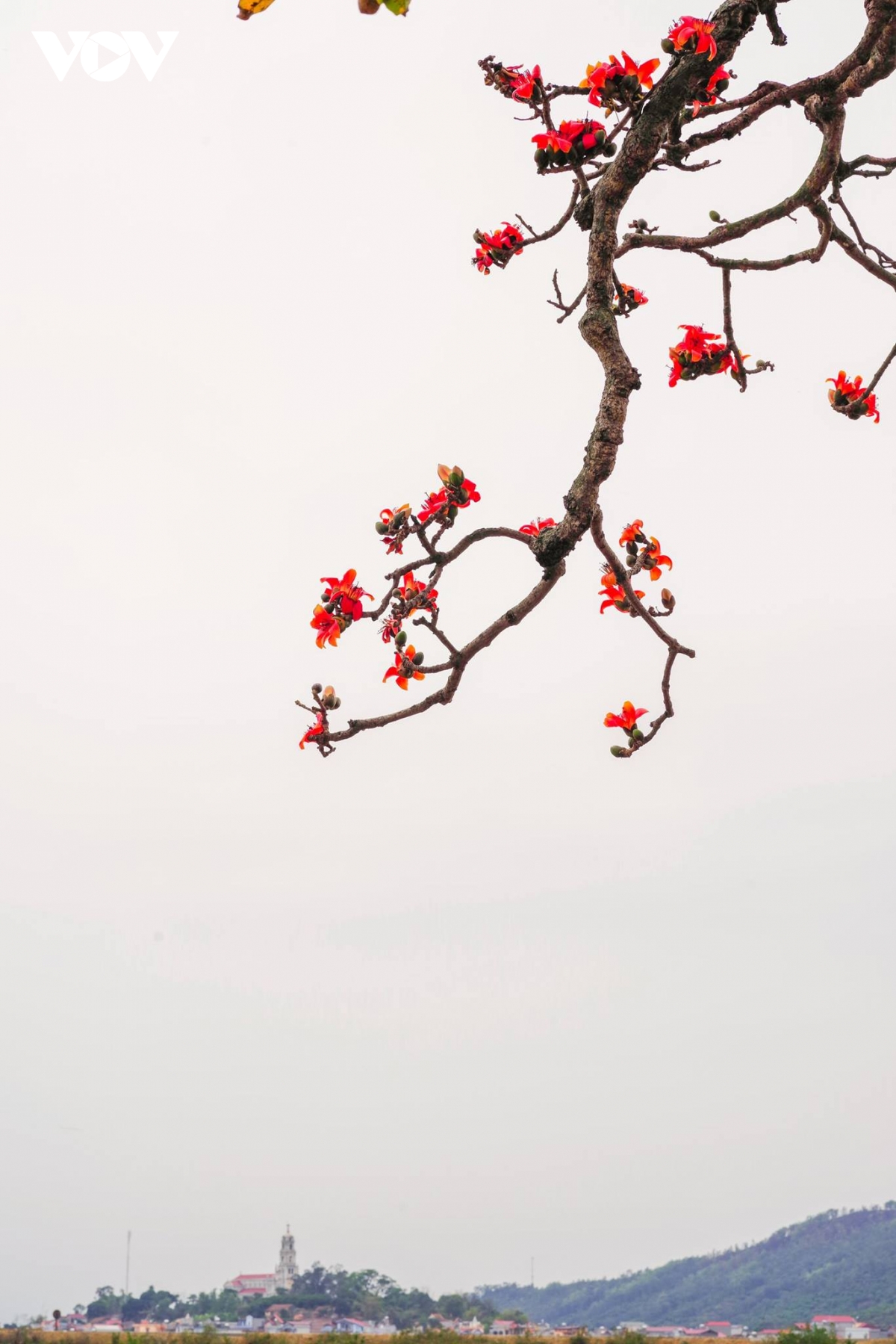 Tháng ba, hoa gạo khoe sắc thắm bên bờ sông Thương