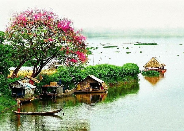 Tháng Tư năm nào tôi cũng tìm dịp về quê một lần.Trong nắng đầu mùa hạ, khi những cơn mưa trái mùa xuất hiện là lúc cây Ô Môi trút hết lá, trái chín rụng lộp độp, và bắt đầu bông Ô Môi khoe sắc rực rỡ nhất. Tôi ngắm hàng cây với dải bong xếp thành từng chùm dày đặc, phủ đầy trên những thân cao lớn, nhuộm hồng cả khoảng không gian miền quê. Một cơn gió từ sông ngang qua, xao xác cơn mưa hoa bay rợp trời, phút chốc, xung quanh là những cánh hoa phủ hồng mặt đất, đẹp đến thắt lòng.