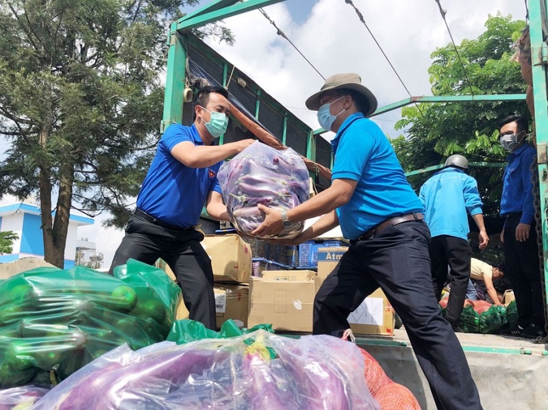 Thanh niên Lâm Đồng vận chuyển nông sản hỗ trợ người dân TP.HCM trong những ngày chống dịch. Ảnh: Lâm Viên/ thanhnien.vn