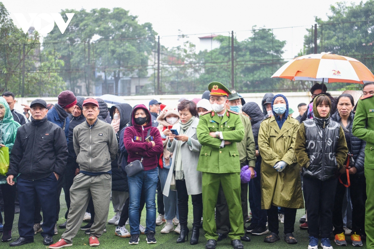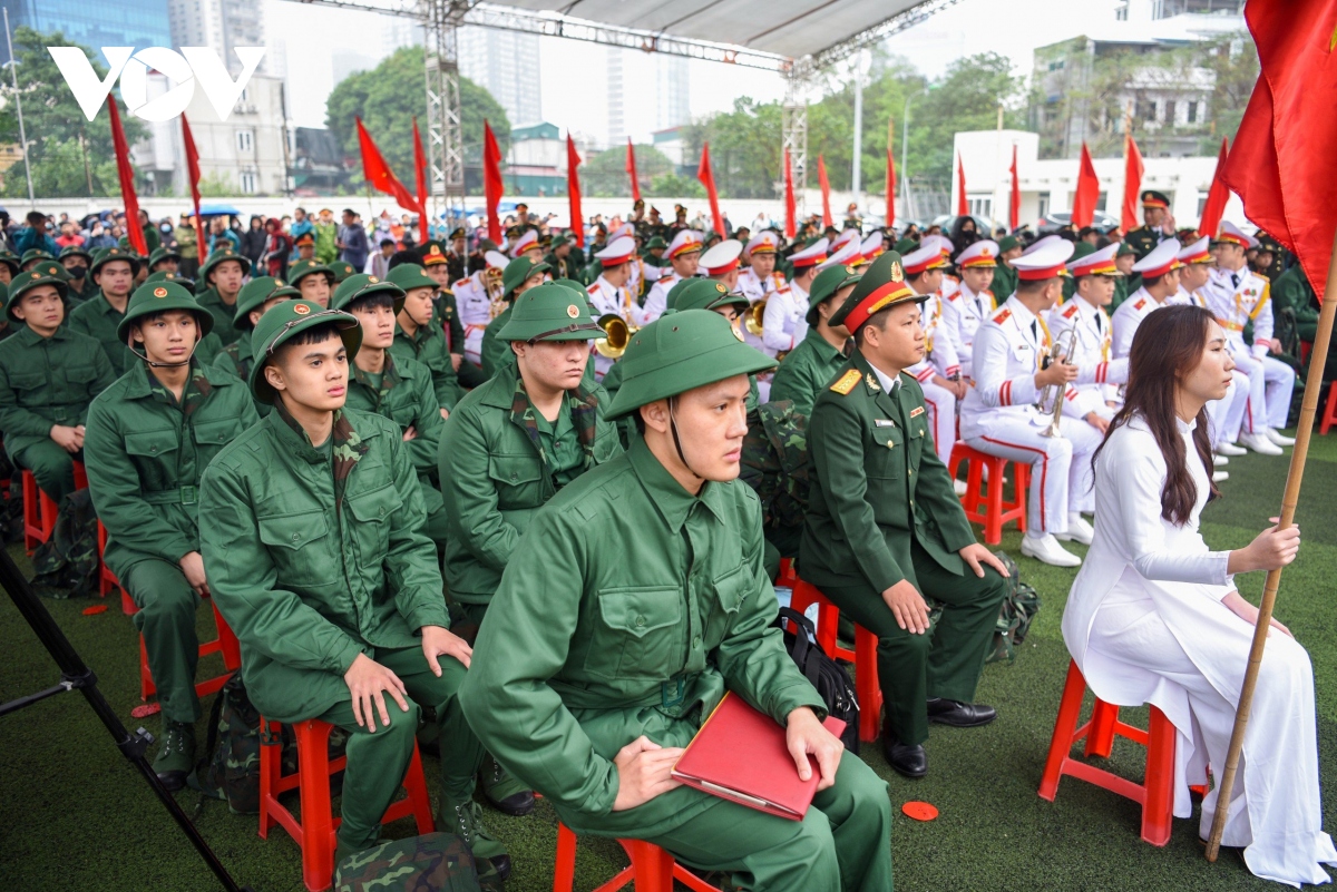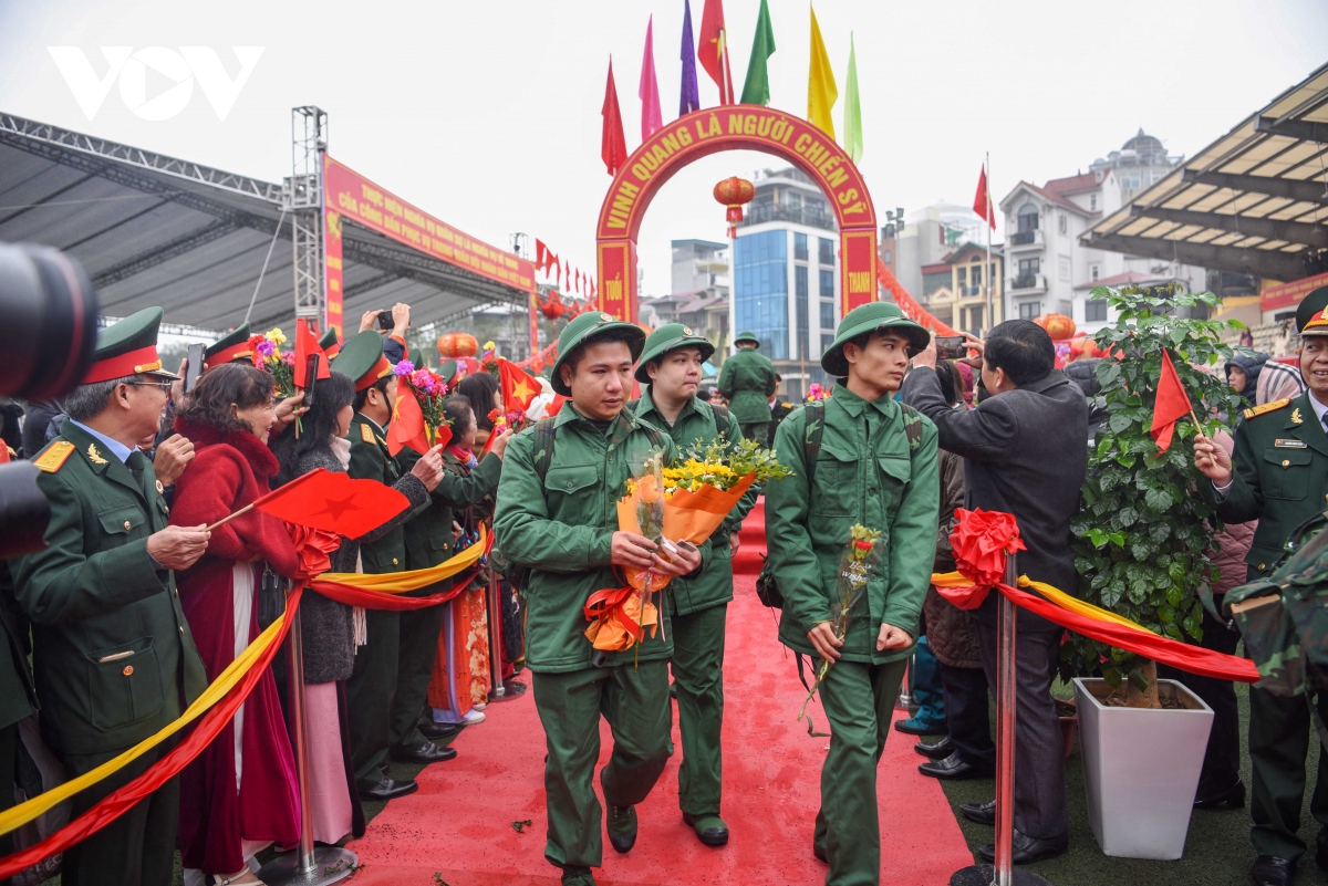 Nhiều người dân có mặt từ sáng sớm ở các địa điểm giao quân để tiễn các tân binh lên đường nhập ngũ. Sáng nay, thời tiết Hà Nội mưa rét. |