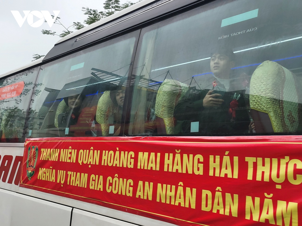 Các tân binh lên xe về đơn vị huấn luyện. Ảnh: Việt Cường/VOV1 |