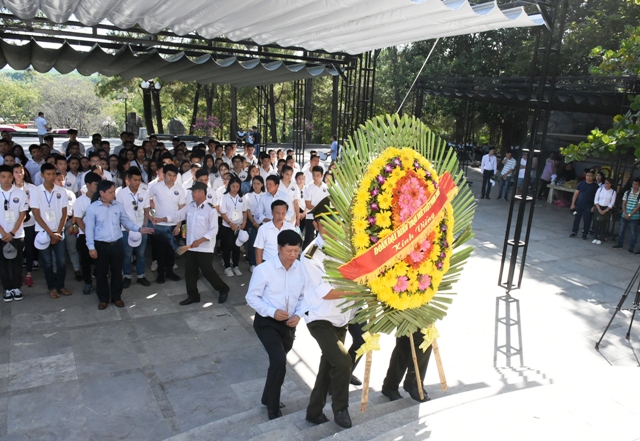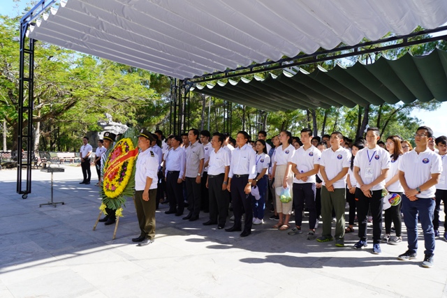 Tại đây, đoàn đã đặt vòng hoa, dâng hương tưởng nhớ các anh hùng liệt sĩ đã anh dũng hy sinh trong hai cuộc kháng chiến giành độc lập dân tộc, tự do cho Tổ quốc, vì hạnh phúc của nhân dân.