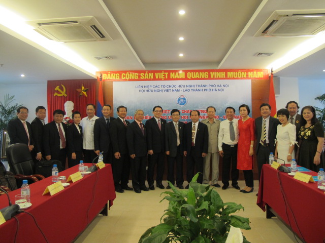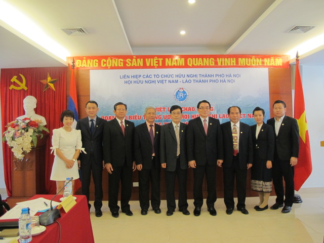 | Hội hữu nghị Trung ương Lào - Việt Nam chụp ảnh lưu niệm với Hội hữu nghị Việt Nam - Lào Hà Nội |