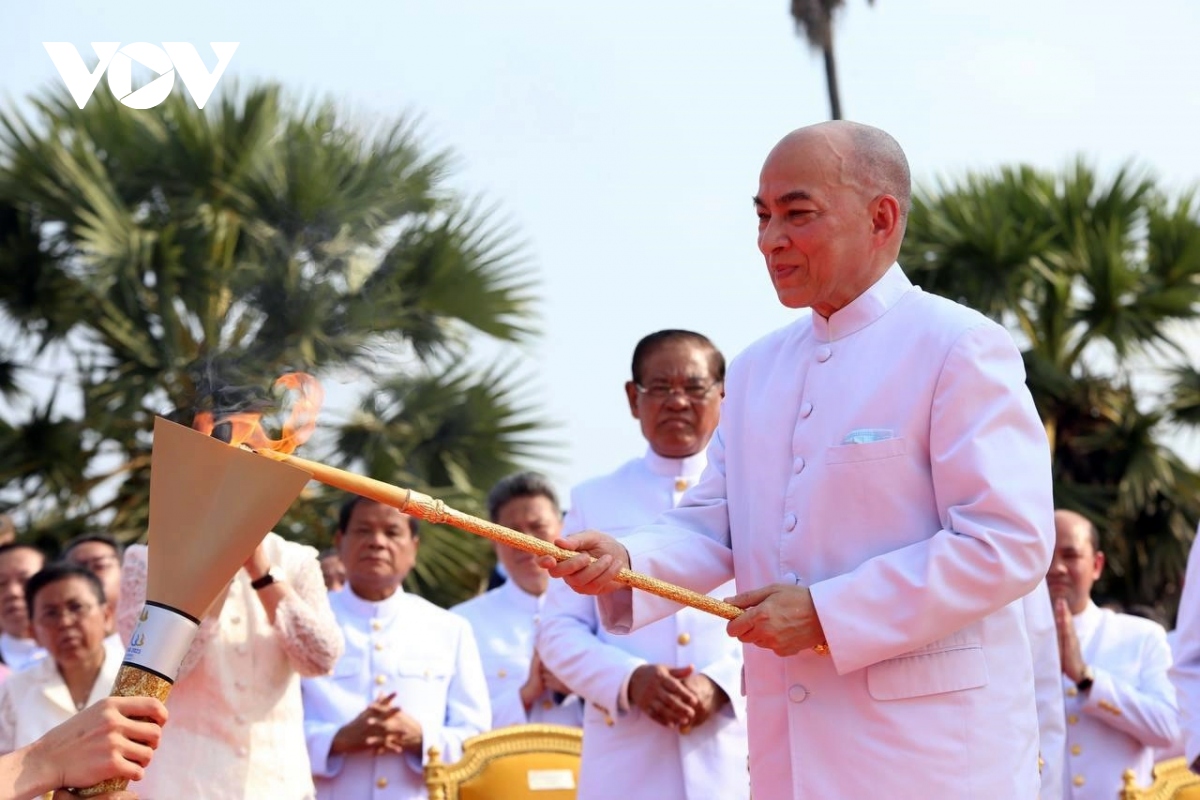 Dưới sự chủ trì của Quốc vương Norodom Sihamoni, Nghi lễ xin lửa và rước đuốc Đại hội Thể thao Đông Nam Á (SEA Games 32) và Đại hội Thể thao người khuyết tật Đông Nam Á lần thứ 12 (ASEAN Para Games) do Campuchia đăng cai đã được tổ chức long trọng ngày hôm nay tại khu quần thể Angkor, tỉnh Siem Reap. |