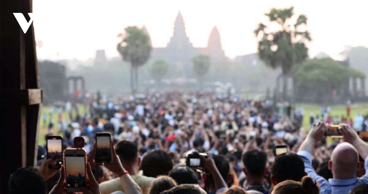 Hôm nay (21/3), du khách trong nước và quốc tế cũng đã đổ về Siem Reap để chiêm ngưỡng khoảnh khắc mặt trời mọc trên đỉnh của đền Angkor Wat. |