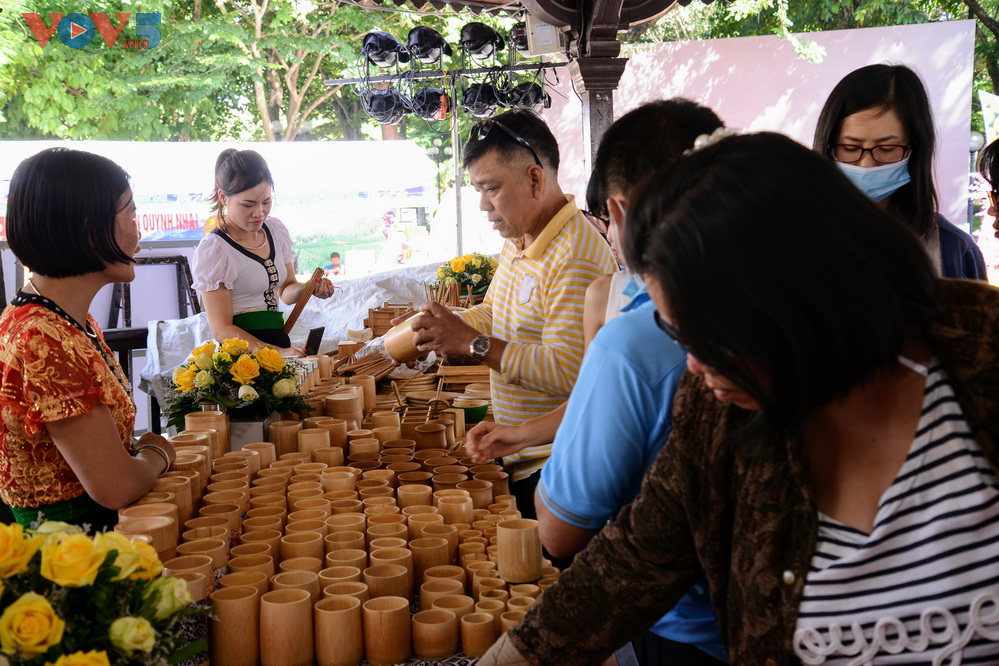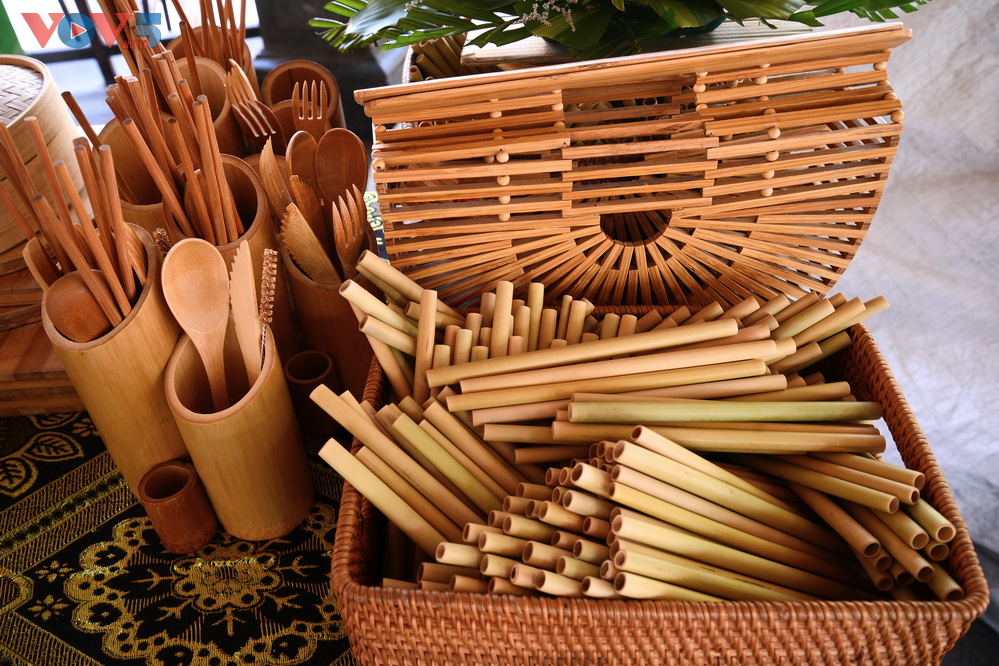 | Những sản phẩm ống hút, bình giữ nhiệt, cốc nước... được làm thủ công từ tre nứa, vật liệu thân thiện với môi trường thu hút sự quan tâm của nhiều du khách. |
