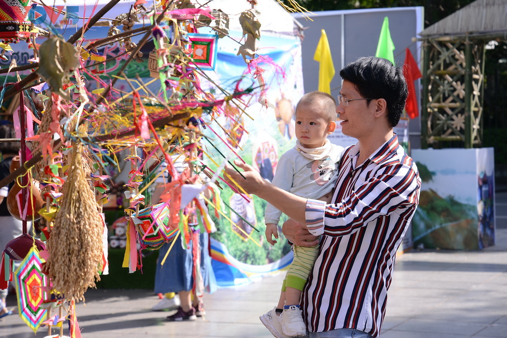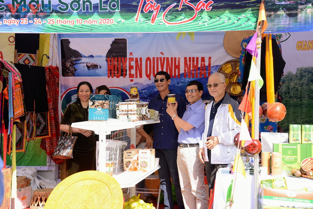 | Nhiều gian hàng bày bán các sản phẩm văn hóa, du lịch, nông sản sạch đặc trưng của các tỉnh Tây Bắc: Sơn La, Điện Biên, Phú Thọ, Yên Bái, Hà Giang... |