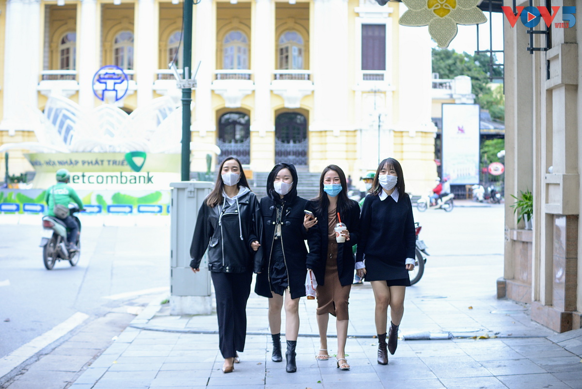 | Đến gần trưa, thời tiết ấm hơn, nhiều bạn trẻ tranh thủ ra đường dạo phố và ăn trưa. |