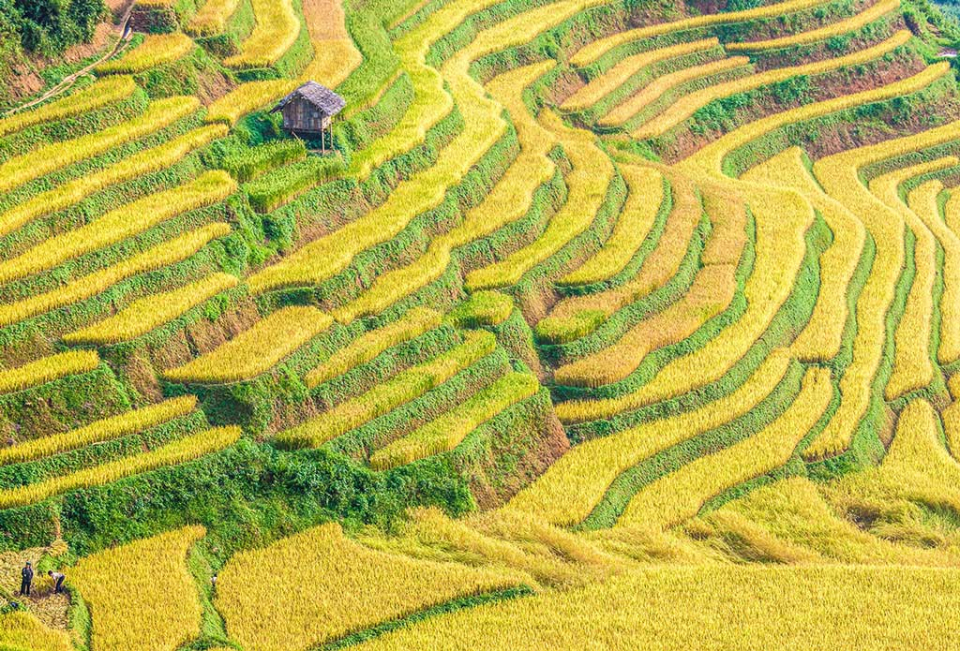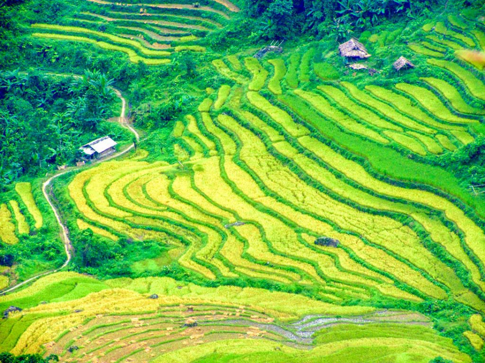 Nhìn toàn cảnh từ trên cao, người lữ khách có thể sẽ ngỡ như mình đang đứng trước một bức tranh lụa gấm khổng lồ. Nếu ai đó lãng mạn hơn, họ sẽ nghĩ những bậc ruộng uốn lượn nơi đây là những vòng sóng âm từ cây đàn hạc của vị thần xa xưa nào đó đang cất tiếng. Bởi lẽ, thiên nhiên đẹp kì diệu như một bức tranh mà hiếm có người nghệ sĩ tài ba nào có thể dùng ngôn từ hay màu sắc để lột tả.