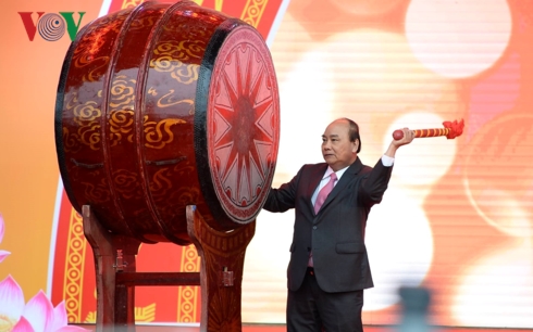 Thủ tướng Nguyễn Xuân Phúc yêu cầu các cơ quan báo chí phải thông tin nhanh nhạy, chính xác, khách quan, trung thực, vừa là kênh phổ biến tuyên truyền của Đảng, Nhà nước, vừa phản ánh kịp thời trung thực những nguyện vọng ý kiến của người dân, truyền tải thông tin thiết thực với người dân. Tăng cường hoạt động, tránh những hoạt động báo chí mạng xã hội, phát huy vai trò, nâng cao trách nhiệm của cơ quan báo chí, cơ quan chủ quản báo chí trong công cuộc đấu tranh phòng chống suy thoái, tham nhũng, lãng phí, tiêu cực trên tinh thần Nghị quyết trung ương 4 khóa 12. (Ảnh: Thủ tướng Nguyễn Xuân Phúc đánh trống khai mạc Hội Báo toàn quốc 2019)