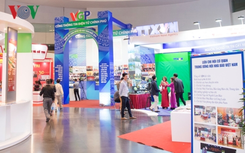 Gian trưng bày của VOV mang dấu ấn riêng, giới thiệu 4 loại hình phương tiện báo chí đặc trưng của mình tới công chúng.