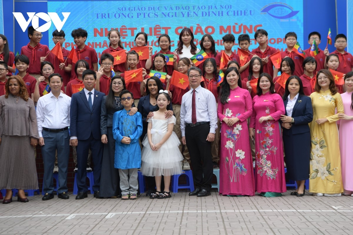 Cũng trong sáng 17/4, Phu nhân Thủ tướng Phạm Minh Chính - bà Lê Thị Bích Trân và Phu nhân Thủ tướng Ethiopia - bà Zinash Tayachew đã tới thăm Trường PTCS Nguyễn Đình Chiểu- ngôi trường dành cho trẻ khiếm thị tại Hà Nội. |