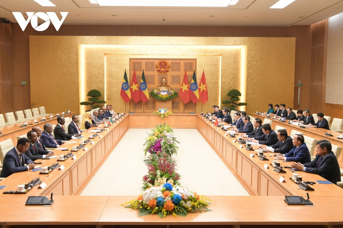 Tại buổi hội đàm, hai bên thống nhất thúc đẩy phát triển hợp tác song phương trên các lĩnh vực mà hai bên có thế mạnh và tiềm năng cũng như nghiên cứu sớm mở cơ quan đại diện ngoại giao tại mỗi nước. Thủ tướng Phạm Minh Chính khẳng định, trong tổng thể chính sách đối ngoại, Việt Nam luôn coi trọng quan hệ hữu nghị với các quốc gia châu Phi bao gồm Ethiopia. Thủ tướng Abiy Ahmed Ali nhấn mạnh Ethiopia coi Việt Nam là ưu tiên đối ngoại ở khu vực châu Á. |