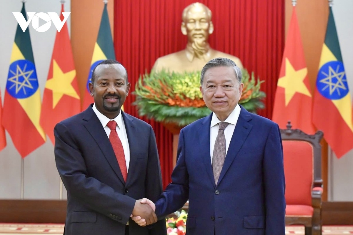 Ngày 16/4, tại Phủ Chủ tịch, Chủ tịch nước Lương Cường đã tiếp Thủ tướng Ethiopia Abiy Ahmed Ali. Chủ tịch nước Lương Cường đề nghị các cơ quan liên quan của hai nước tích cực đàm phán để sớm ký kết các văn kiện, hoàn thiện khuôn khổ pháp lý, tạo thuận lợi cho hợp tác song phương, đặc biệt trong các lĩnh vực có tiềm năng. Thủ tướng Abiy Ahmed Ali đánh giá rất cao thế mạnh của Việt Nam trong lĩnh vực nông nghiệp và bày tỏ mong muốn Việt Nam chia sẻ kinh nghiệm và hỗ trợ Ethiopia trong lĩnh vực này. |