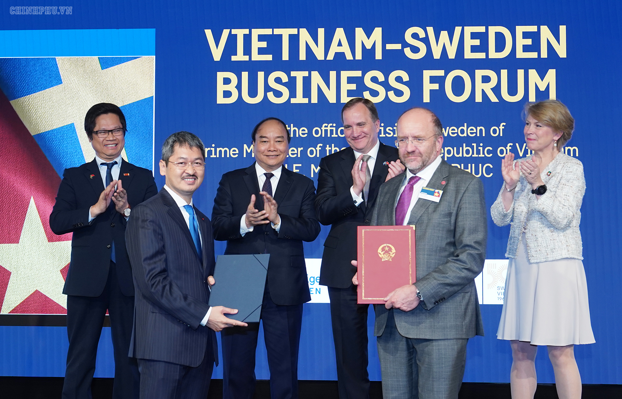 | Thủ tướng Nguyễn Xuân Phúc và Thủ tướng Thụy Điển Stefan Löfven. Ảnh VGP/Quang Hiếu |