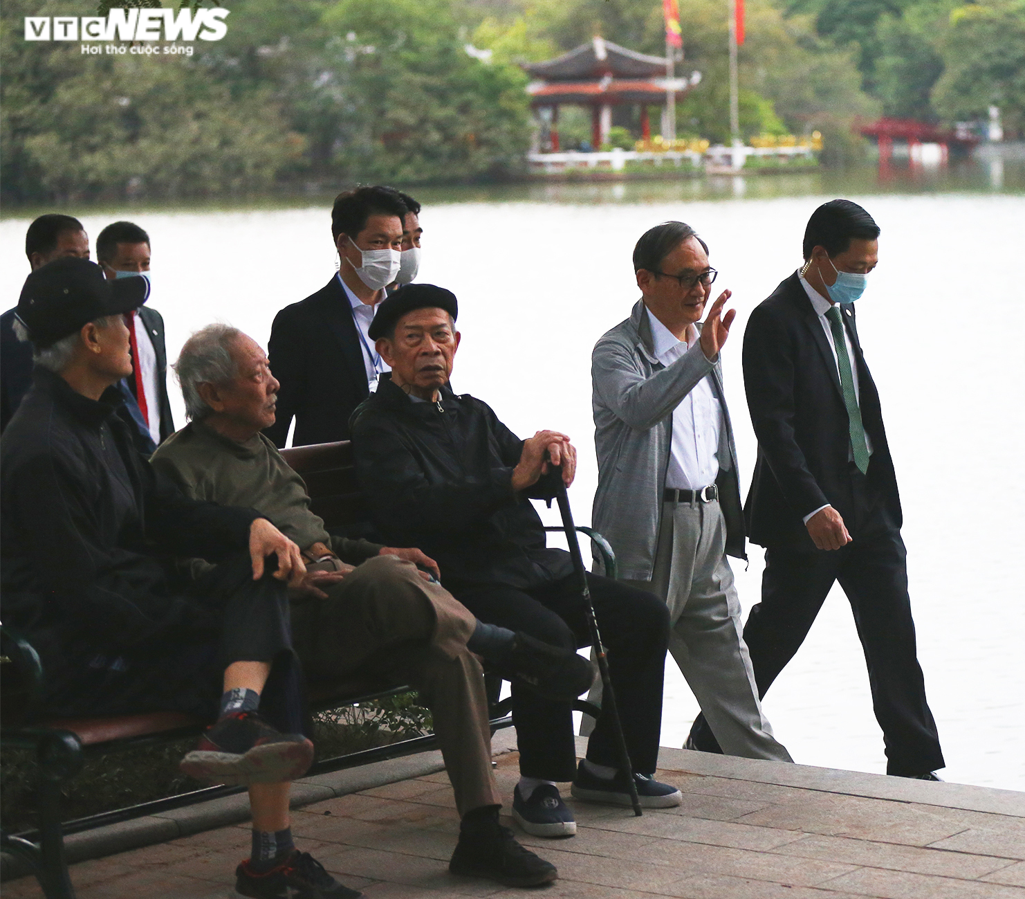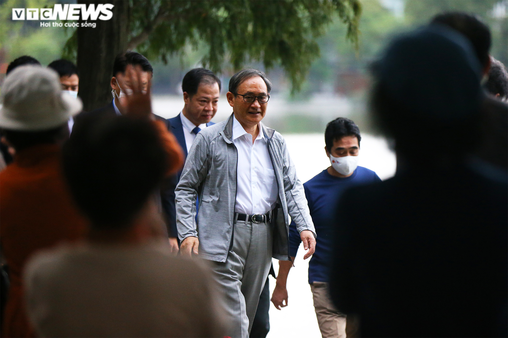 Thủ tướng Nhật Bản Suga Yoshihide xuất hiện ở Hồ Gươm vào sáng sớm 20/10.