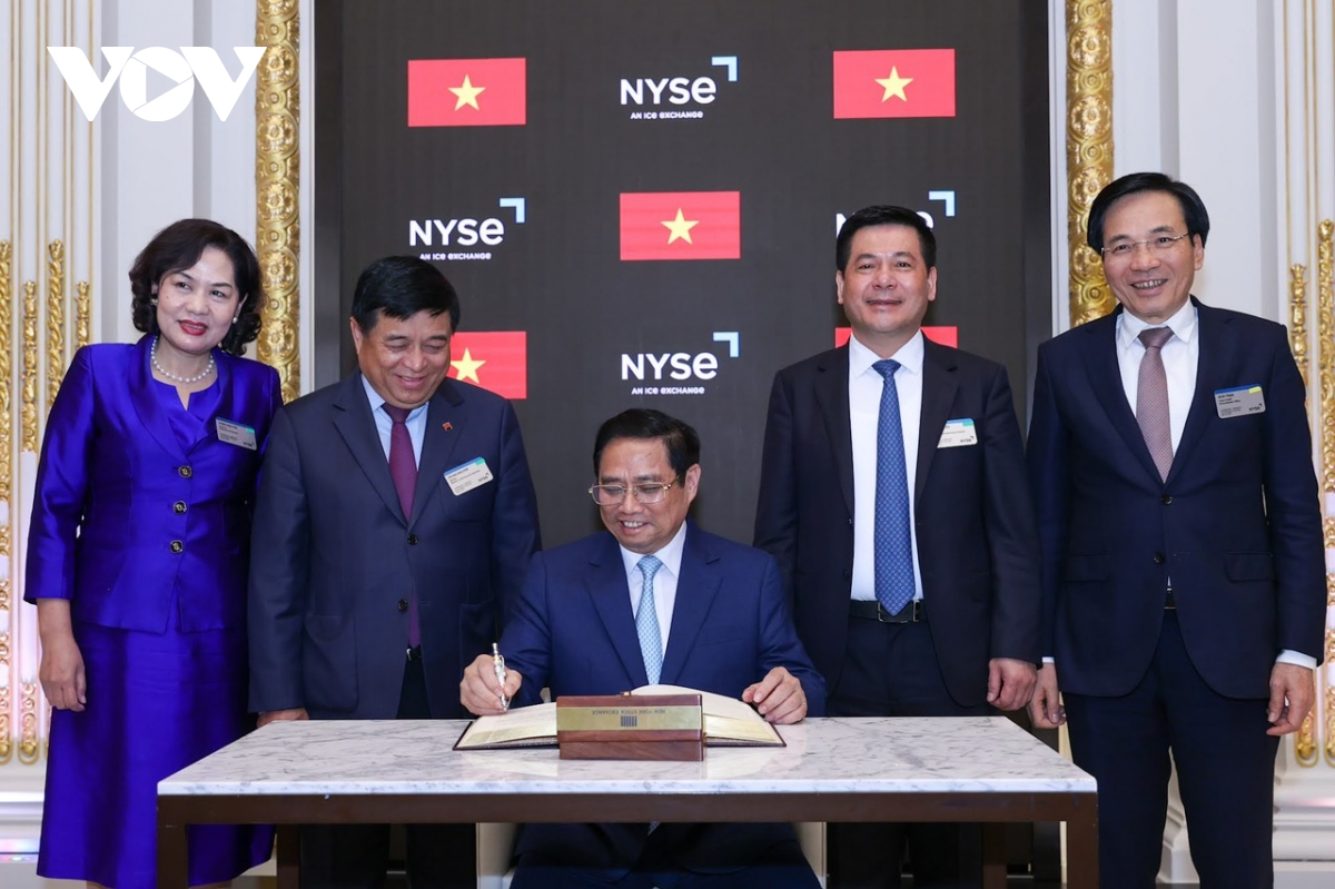 Sàn giao dịch chứng khoán New York chào đón Thủ tướng Phạm Minh Chính và đoàn đại biểu Việt Nam. |