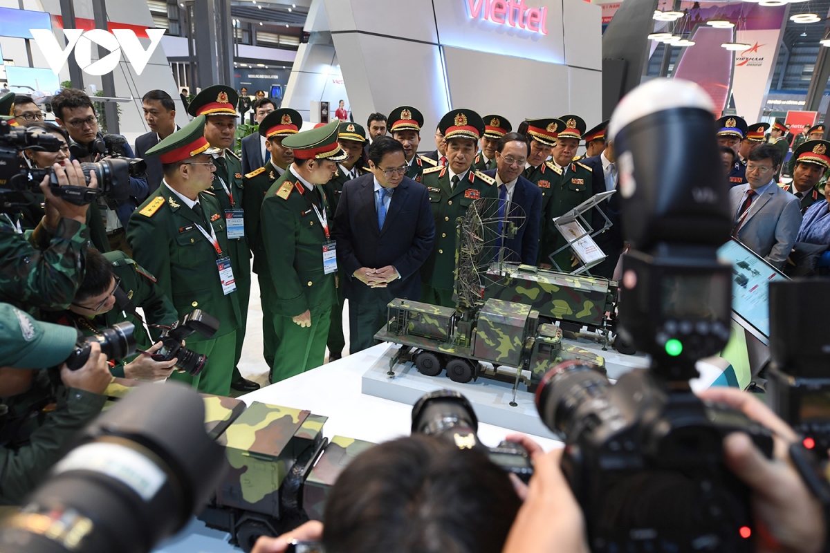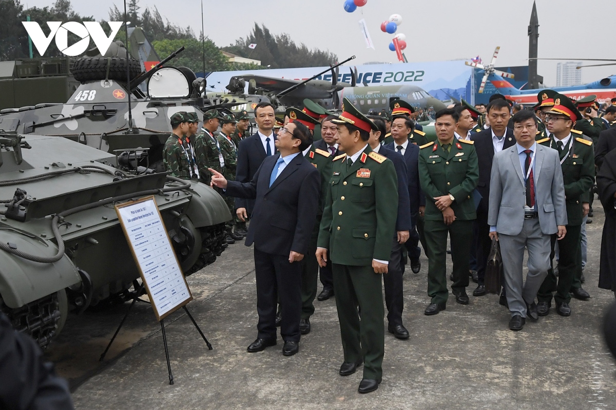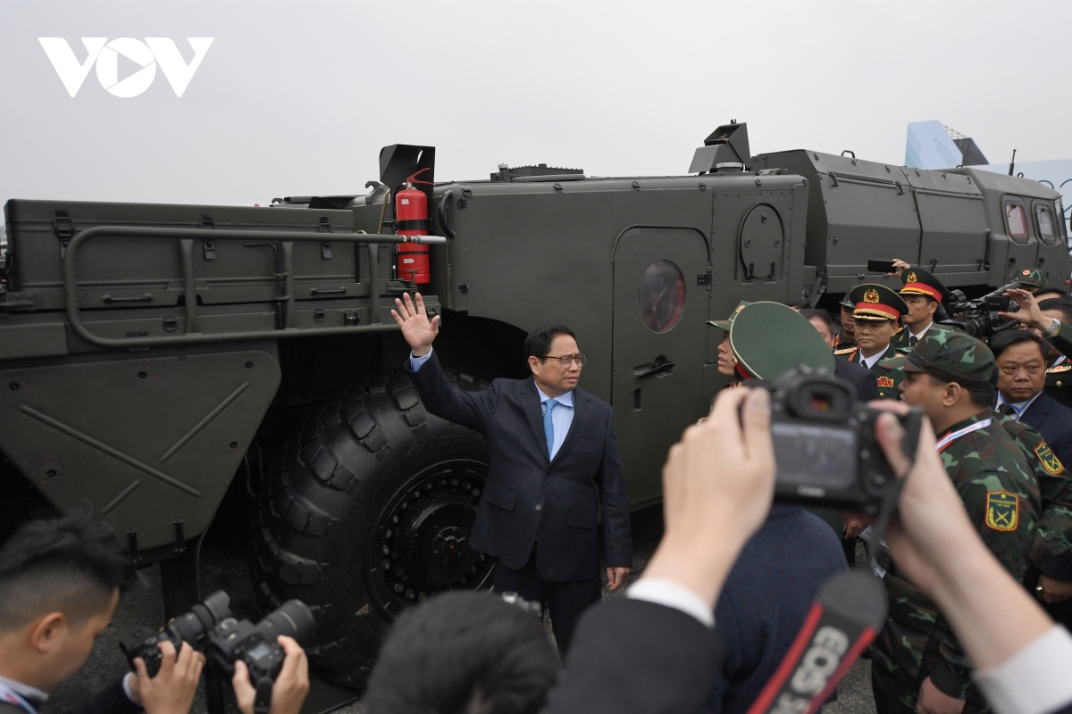 Ngay sau lễ khai mạc, Bộ trưởng Phan Văn Giang đã cùng Thủ tướng đi tham quan các khí tài quân sự được trưng bày tại triển lãm. |