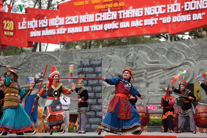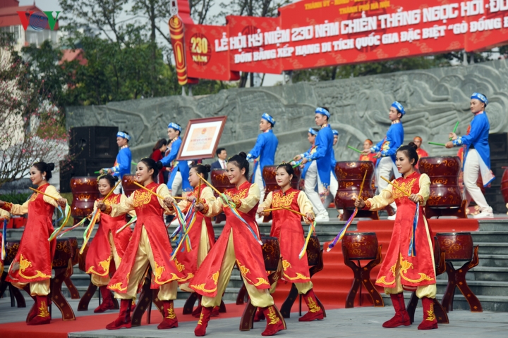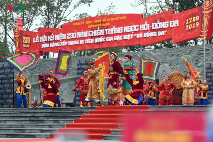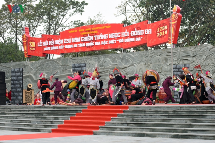 Trước đó, phần trống hội hoành tráng đã chính thức khai mạc lễ hội kỷ niệm 230 năm chiến thắng Ngọc Hồi - Đống Đa. |